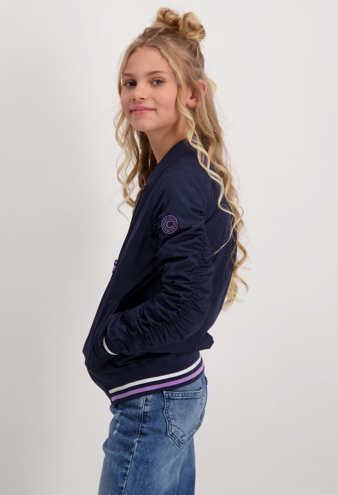 Sportlich schicke Sommerjacke / Übergangsjacke im Collegejacken Style in tief dunklem Navy Blau, aus wasserabweisendem Material, Logo Patch und weichem Taftfutter innen, für Girls von dem niederländischem Jeans Fashion Label CARS JEANS.