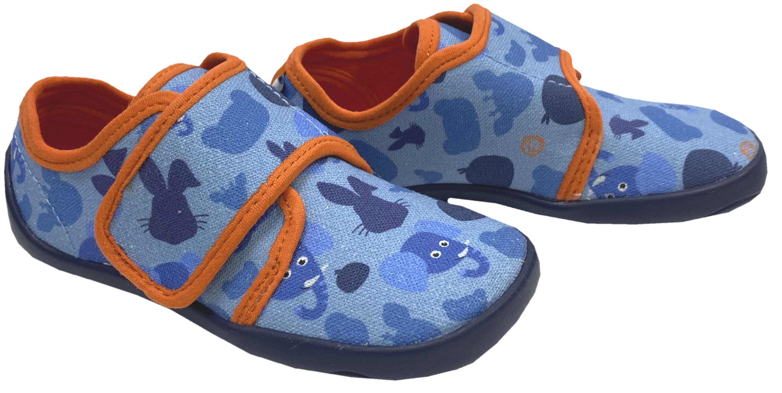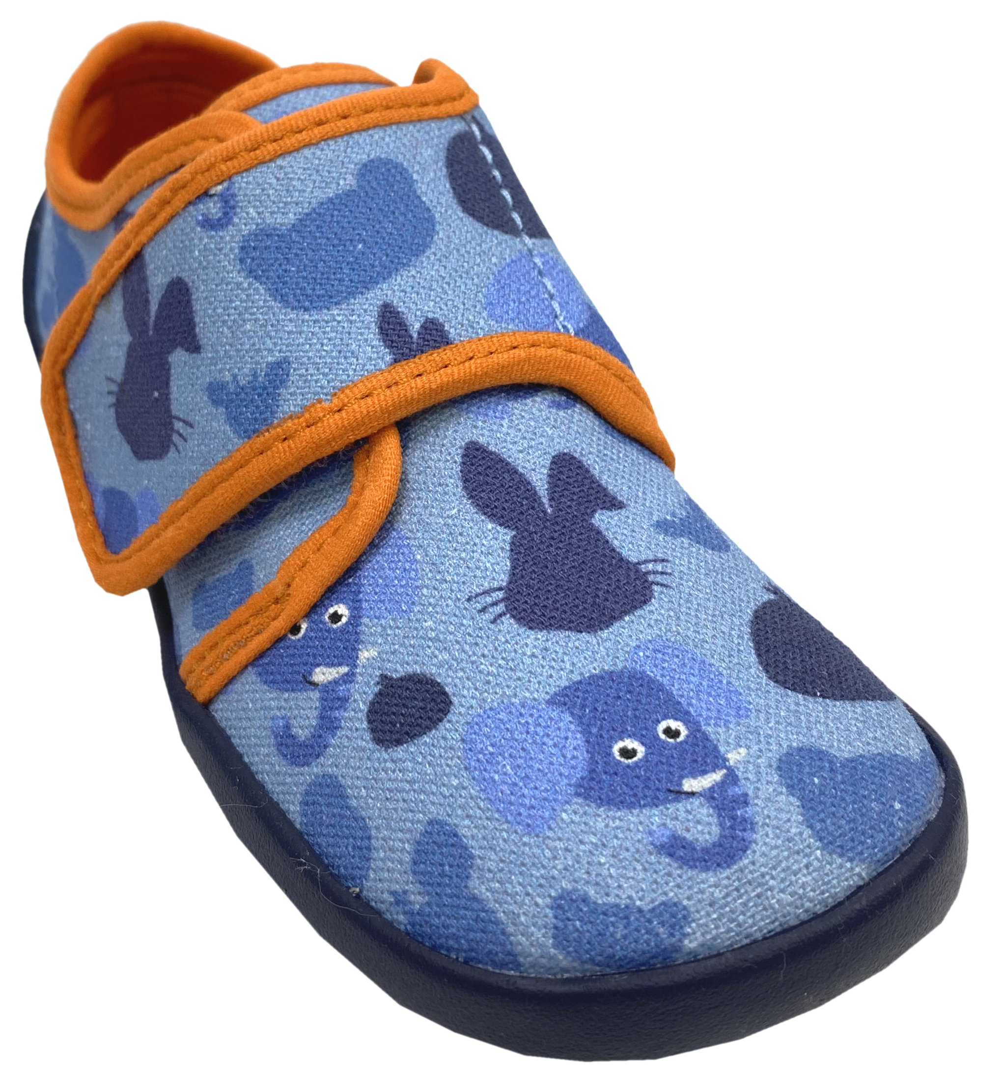 Produktinformationen "Leichte & flexible Slipper Cotton MOVY / Hausschuhe mit Klett von AFFENZAHN Blau Elefant"