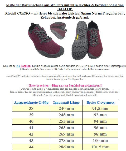 Produktinformationen "Leichter Sneaker / Barfußschuh aus Wollmix in Bordeaux von BALLOP Modell CORSO"