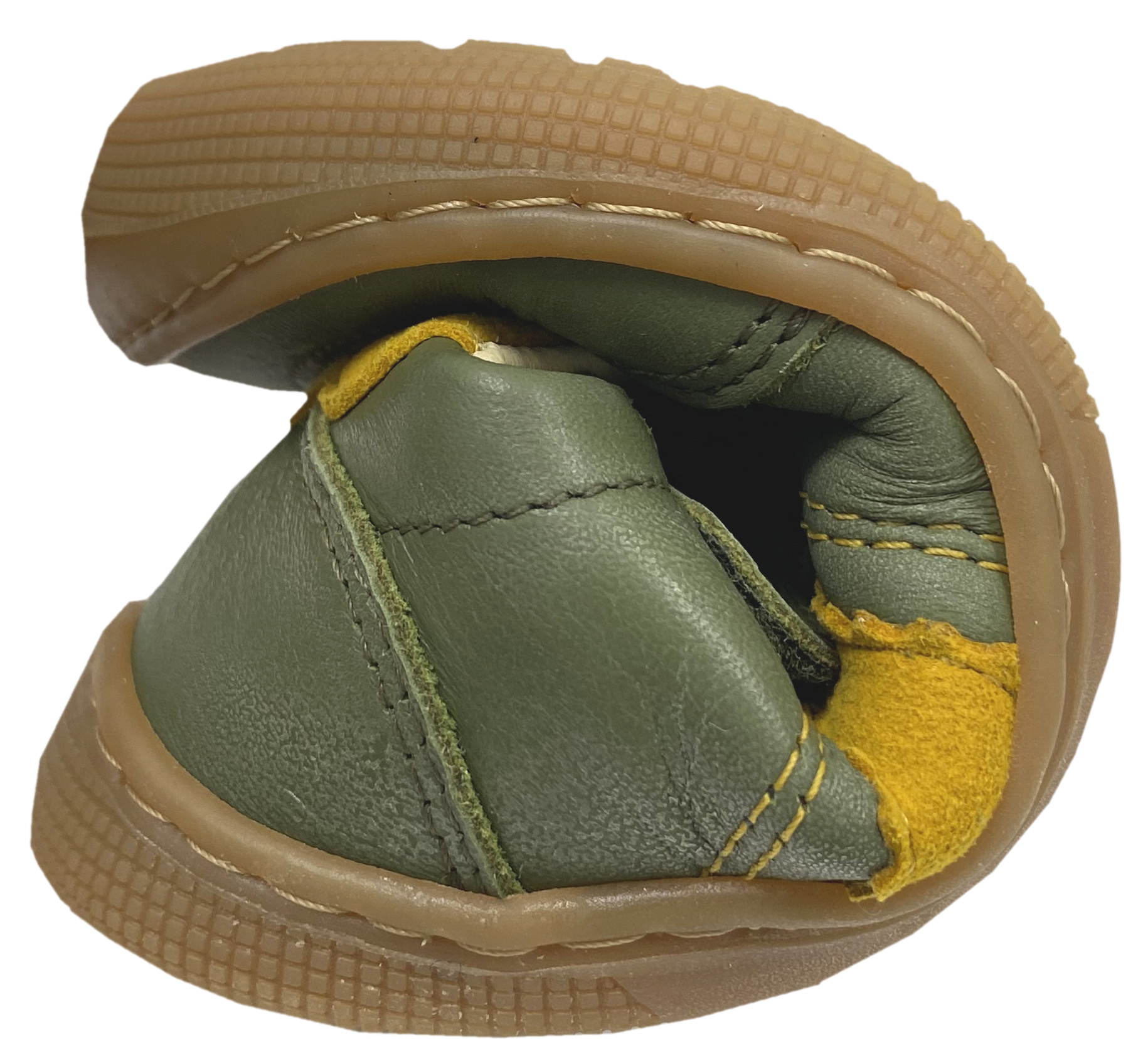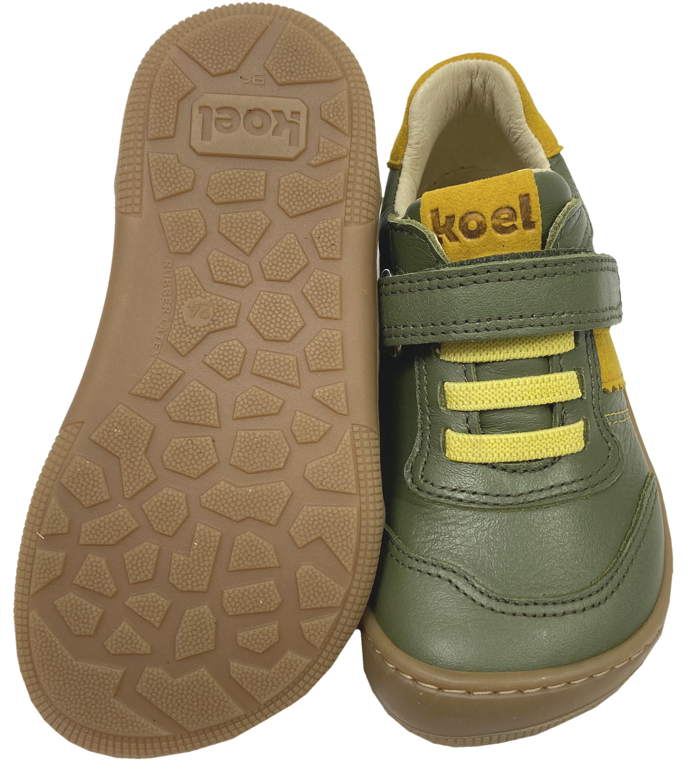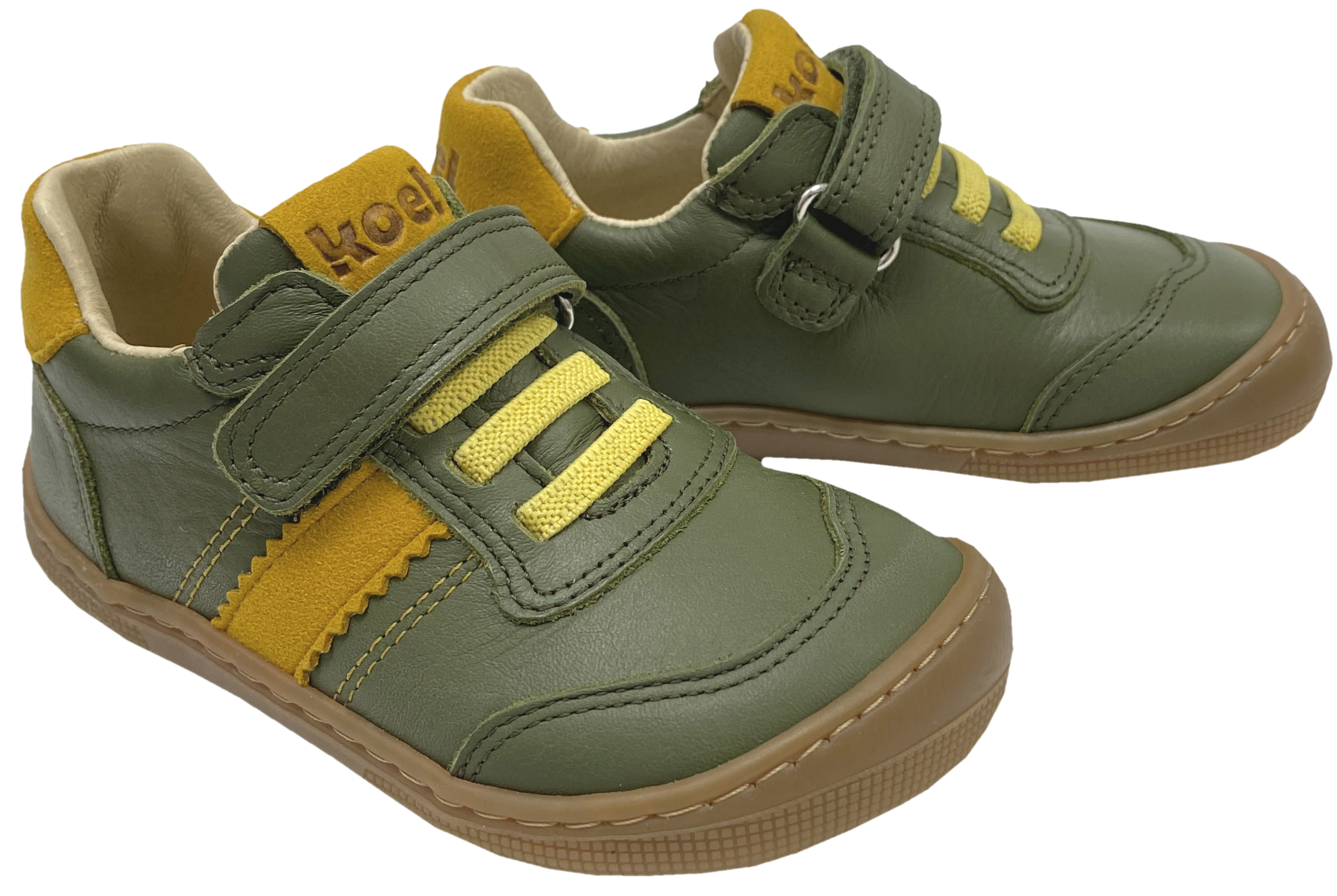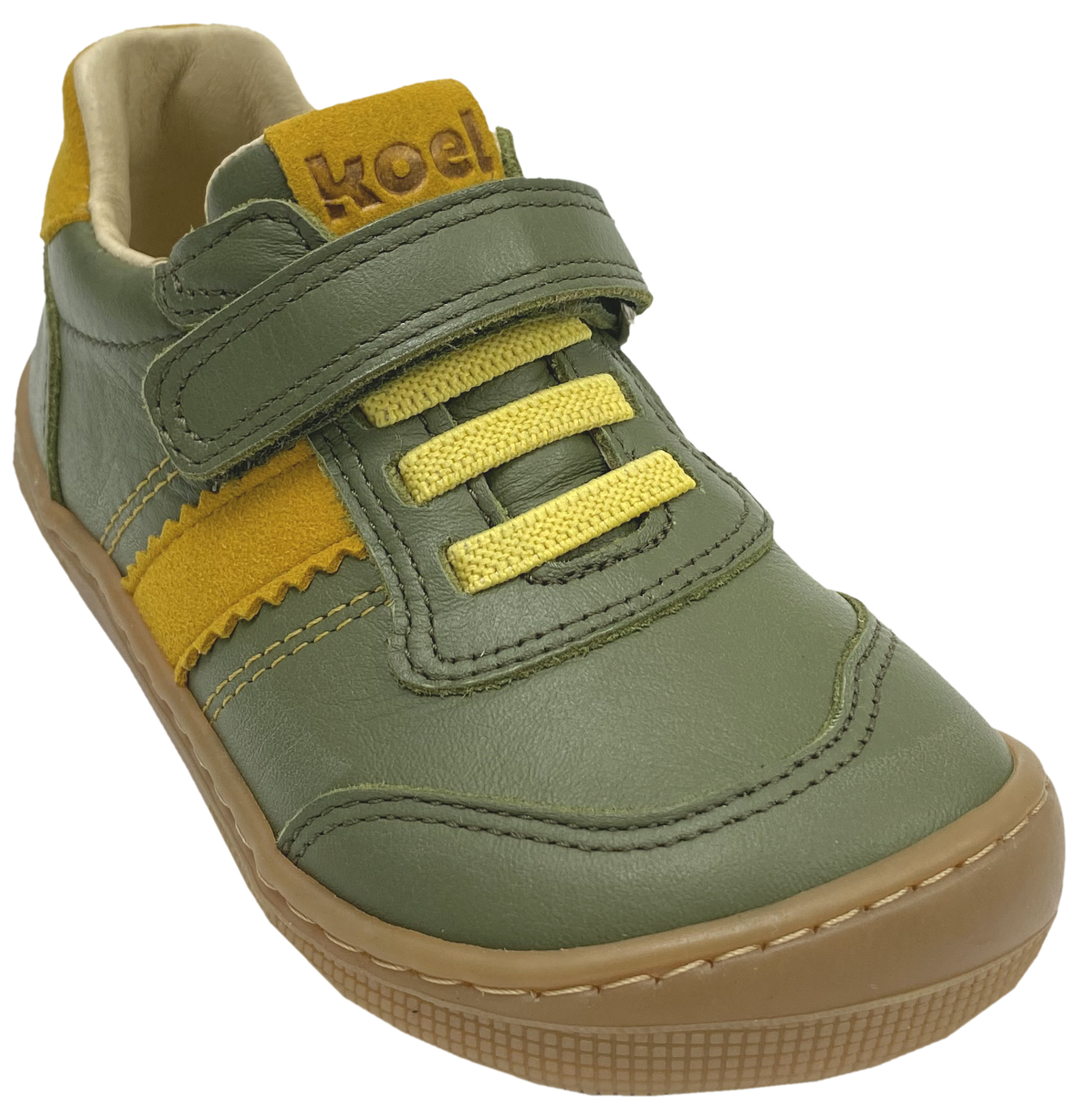 Produktinformationen "Low Top Leder Sneaker mit Klett in Oliv Grün / Gelb DYLAN Leather 3.0 von KOEL Barefoot"