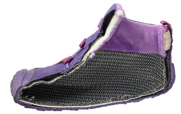 - Außensohle sehr weich, knautschbar, im Fersenbereich und an der Zehenbox als Schutz etwas höher gezogen
