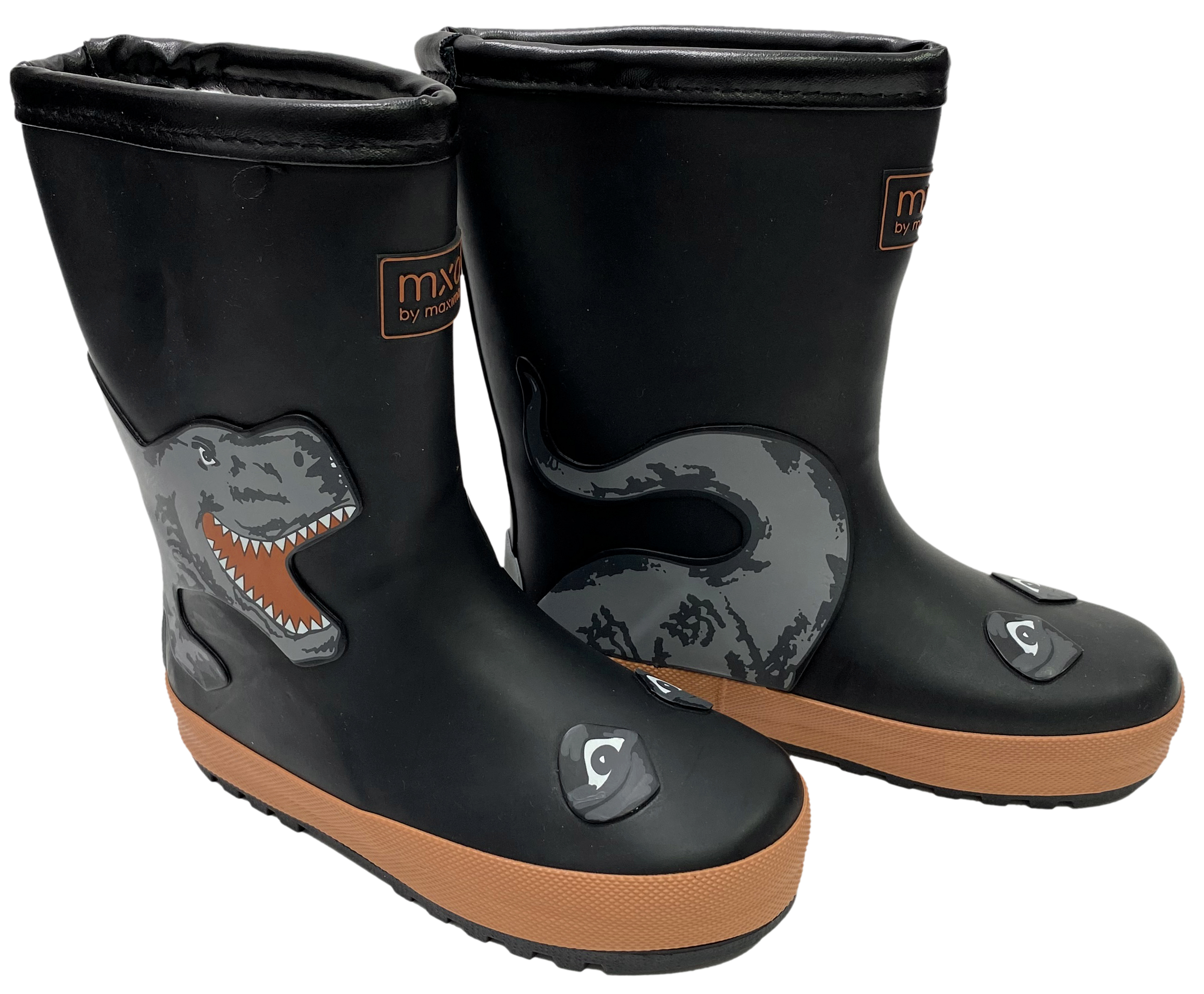 Produktinformationen "Mittelschaft Gummistiefel aus Naturkautschuk + Warmfutter in Schwarz mit DINO von MAXIMO 973065"