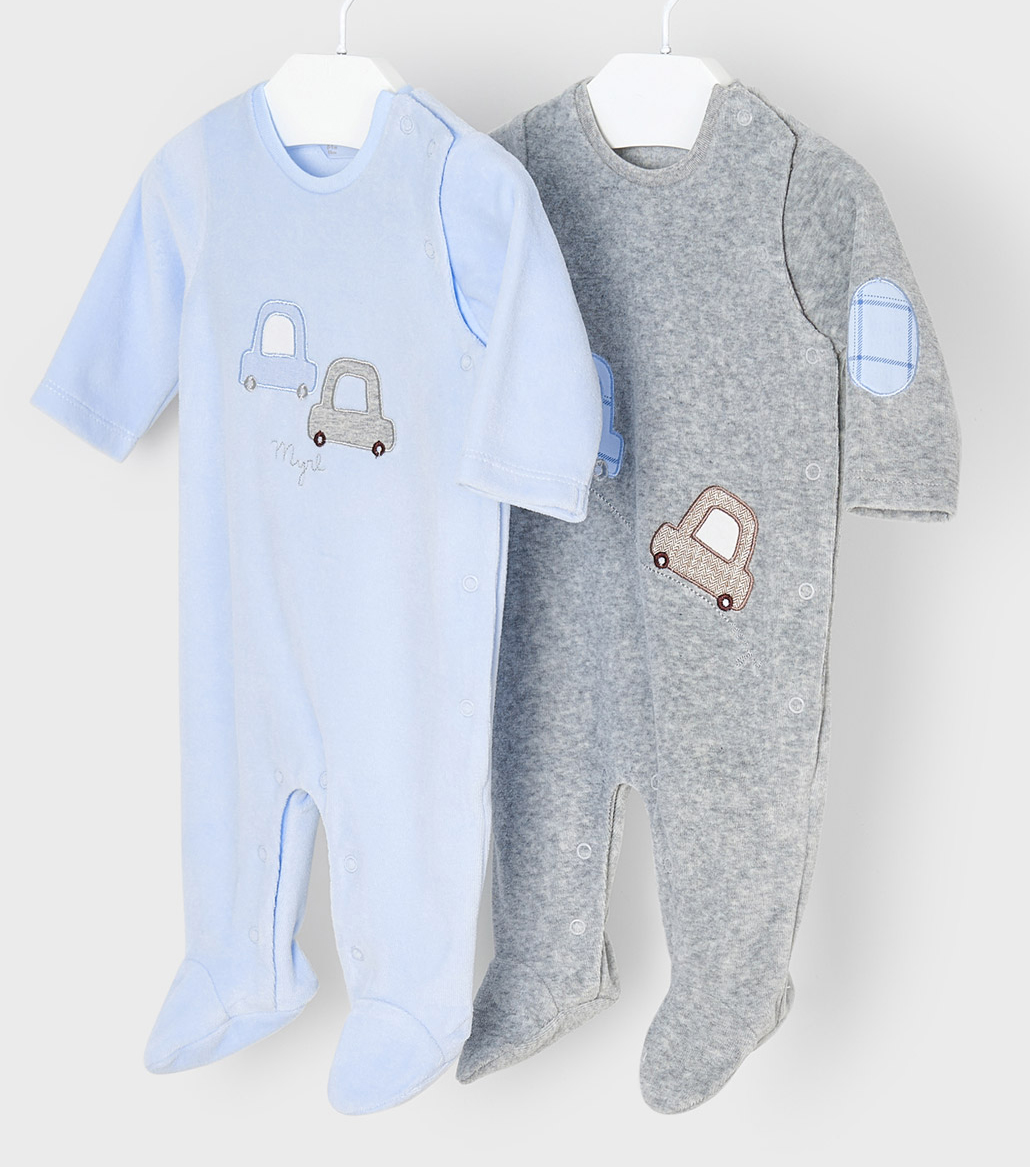 Nicki Plüsch Strampler, Einteiler mit Fuß in Hellgrau, Auto Applikation von MAYORAL Baby 2627