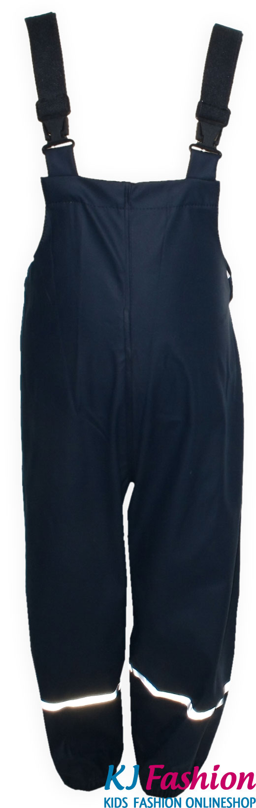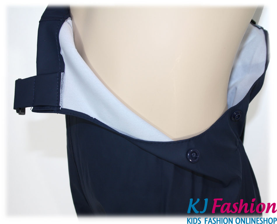 Das Set besteht aus einer Regenjacke mit Kapuze und einer Latzhose / Matschhose mit Latz in tief dunklem Marine Blau.