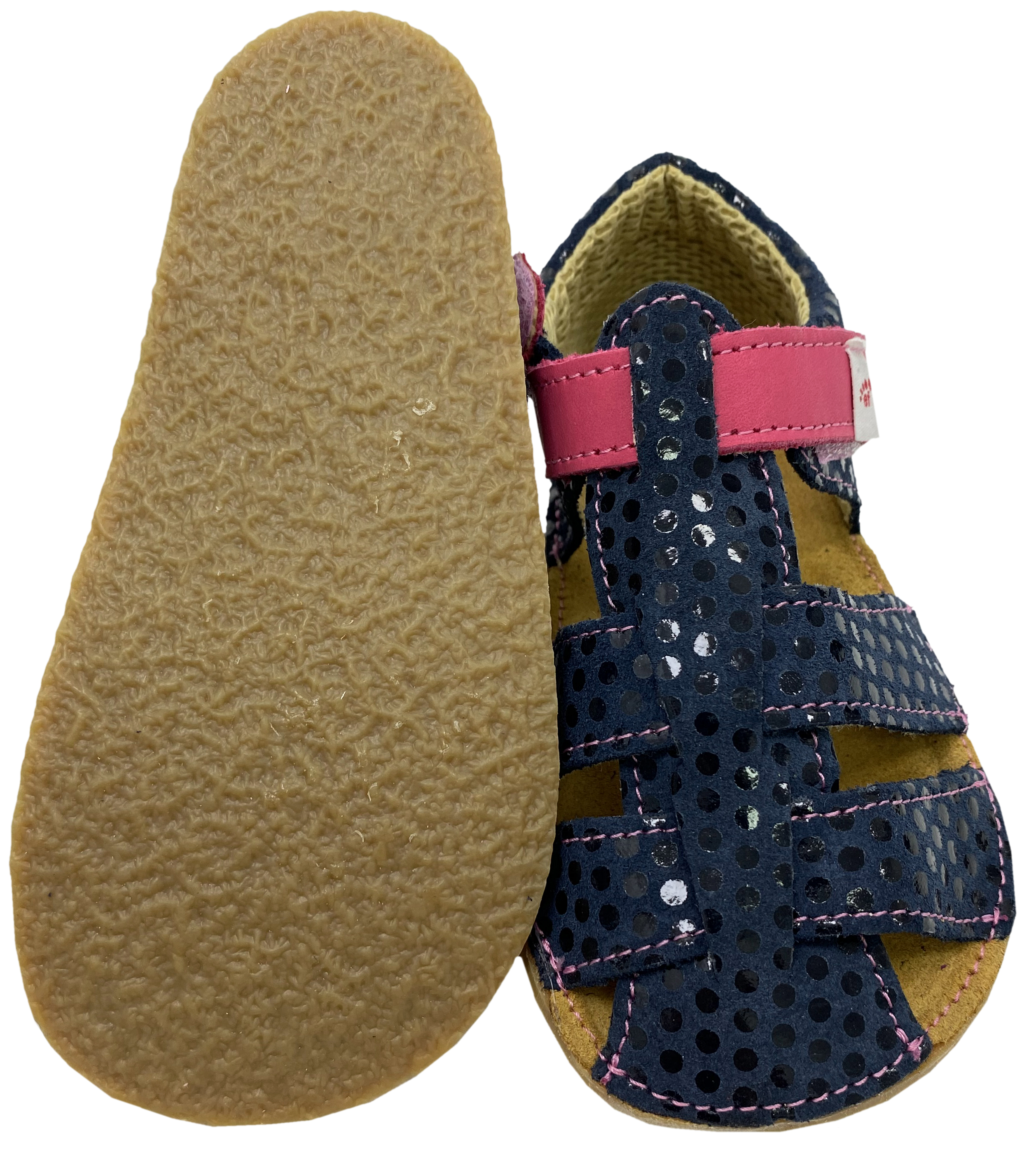 Leichte und absolut flexible Sandalen aus weichem Leder aus der Region des Herstellers, auf einer 3 - 4 mm Gummi Krepp Sohle, mit breitem Klettstreifen, optimal an die Fessel anzupassen, aus der Tschechischen Republik - ein junges, fortschritliches Unternehmen von Schuhen mit Minimalsohlen für jede Saison - Barfußschuhe mit soliden Preisen in hochwertiger, robuster Qualität - das ist EF BarEFoot.