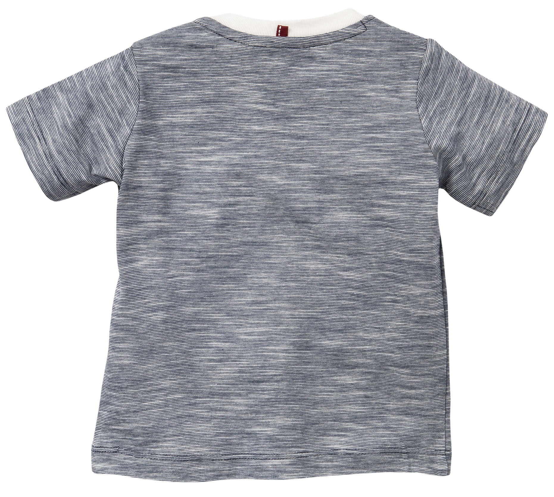 Locker leichtes und richtig süßes T-Shirt mit kurzem Arm in Marine / Weiß geringelt, aus weicher, reiner BIO BW mit einem niedlichem Safari Print auf der Front für kleine Jungen von PEOPLE WEAR ORGANIC.