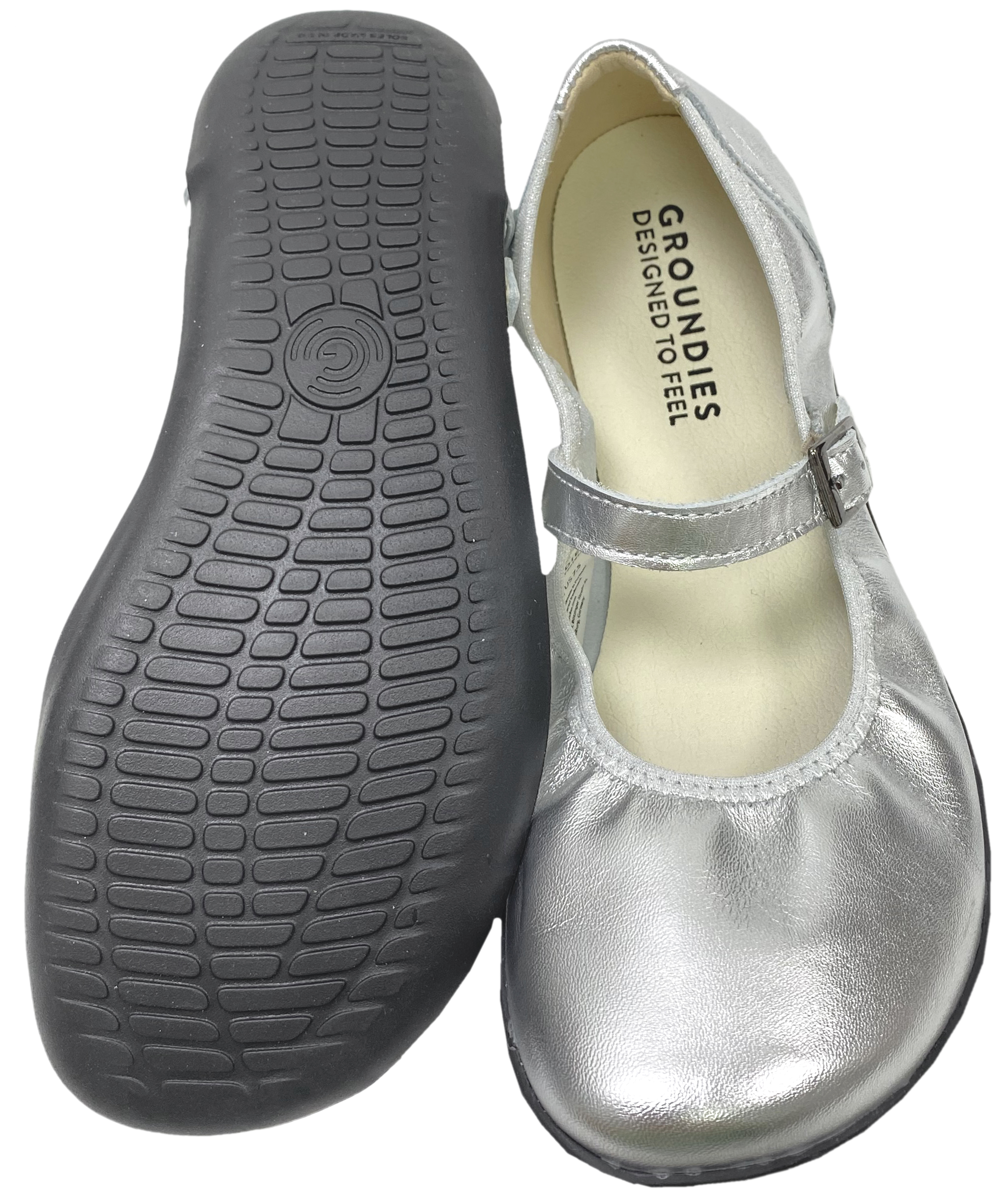 Schicke Ballerina Schuhe in Silber Glänzend AMBER auf der GO1 Sohle von GROUNDIES