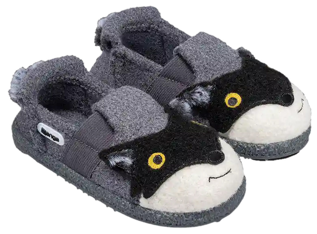 Ein leichter Hausschuh aus weichen Materialien, mit kindgerechten Motiven oder in tollen Uni Farben von NANGA mit neuer durchgehender TPR Sohle.