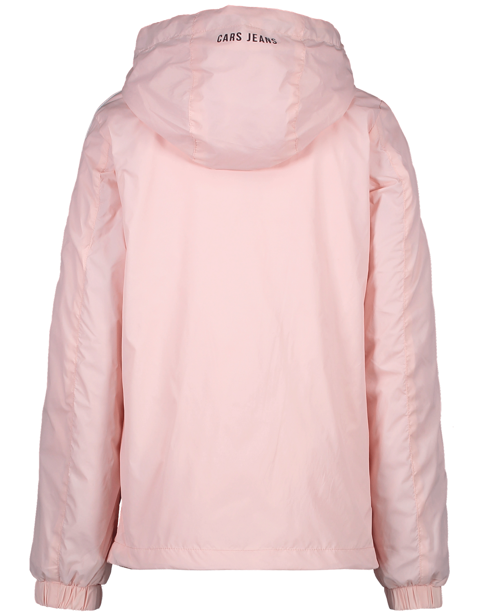 Sportlich schicke Sommerjacke in einem soften Apricot Ton aus wasserabweisendem Material, mit fest angenähter Kapuze, Logo Prints und weichem Taftfutter innen, für Girls von dem niederländischem Jeans Fashion Label CARS JEANS.