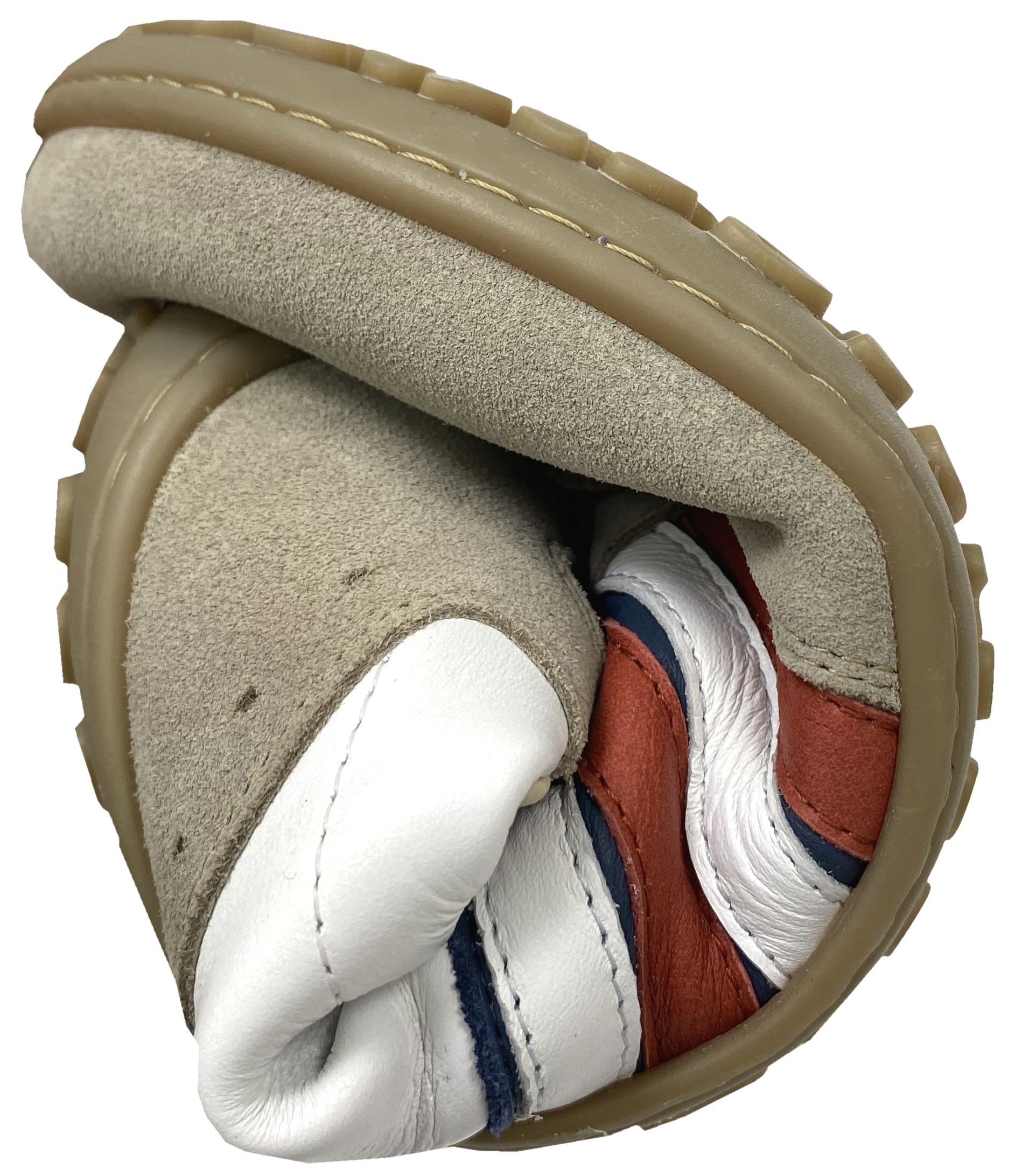 - weiche, mit Leder bezogene Sohle innen