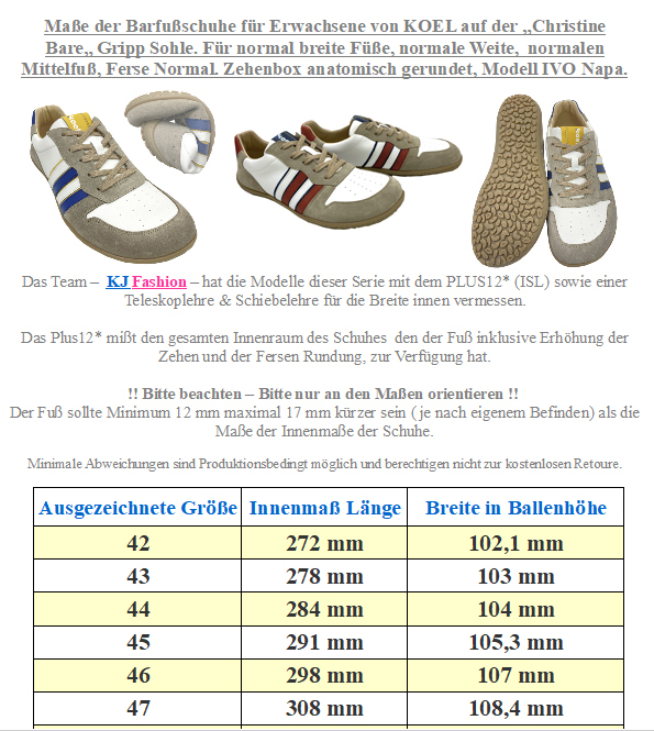 Schicker Halbschuh / Sneaker für "große Füße" für jeden Tag, aus einem super weichen und leichten Wildleder für ein optimales Fußklima, mit der extrem flexiblen MAGICAL Rubber Sohle mti einer Stärke von nur 6,5 mm, innen aus ganz weichem und sehr angenehm zu tragendem Mikrofaser für ein ganz weiches und bequemes Gefühl am Fuß von MAGICAL SHOES - hochwertige Handarbeit aus Polen. !!Bitte beachten sie die als Bild hinterlegte Tabelle mit den genauen Maßen der Schuhe, um so ein unnötiges hin und her senden zu vermeiden - bei Fragen mailen Sie uns einfach vor dem Kauf an - Ihr Team KJ Fashion !! Modell: Promenade Gray Suede, Mittelgrau, Sämischleder ( spezielle Gerbung mit natürlichen Fetten für ein samtig weiches Finish )Material: Premium Wildleder ( Sämischleder ) | Innen: Mikrofaser für optimales Fußklima | Innensohle: Mikrofaser gegen zu schnelle Schweißbildung | Sohle: Magical Rubber mit minimal Profil 6,5 mm, sehr gut rollbar, quer und längs flexibelWeite (diese bezieht sich auf das Volumen) für normal hohen bis hohen Spann geeignet da variierbar | Leiste (Stehfläche Fuß) Normal | Mittelfuß: normal | Ferse: normal | Zehenbox: anatomisch gerundet (viel Platz zum auffächern der Zehen) - ein sportlich schicker Sneaker für normal breite Füße die es lieben Barfuß zu laufen - ein Schuh mit einem extrem geringen Eigengewicht ( Gr. 41 von 190 Gramm) der dem Träger das Gefühl gibt fast nichts am Fuß zu tragen - weiches hochwertiges Leder mit natürllicher fettgerbung für eine ganz weiche Haptik und eine hohe Strapazierfähigkeit - mit breiten Flachsenkeln zu schließen - Abschlüsse paspeliert, Fersenbereich leicht abgepolstert für ein angenehmes Tragegefühl - weiches Mikrofaser innen, Innensohle mit einer speziellen Beschichtung aus Mikrofaser gearbeitet um den Schweiß des Fußes schneller abtransportieren zu können - quer und längs flexible Sohle mit einem guten Profil und einer Stärke von 6,5 mm Sie haben bei dem Schuh das absolute Barfußgefühl mit Schutz :-) sich nicht zu verletzen auf unebenen Untergründen - hervorragende Handarbeit aus Polen von MAGICAL SHOES.