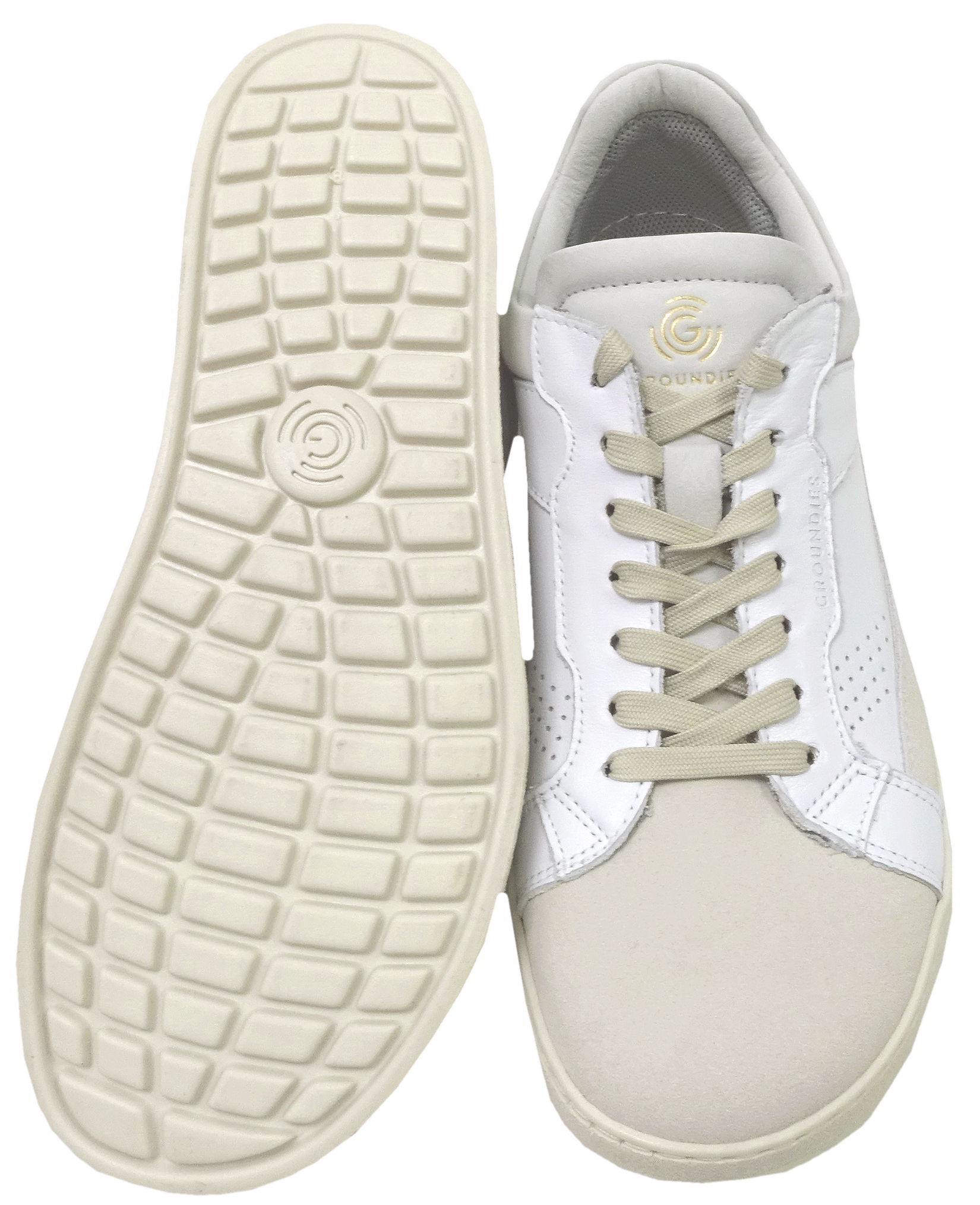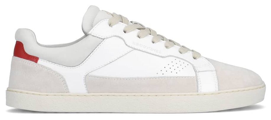 Sportlich schicke Barfußschuhe von GROUNDIES in Weiß / Beige / Rot Modell COURT W GS1 Sohle