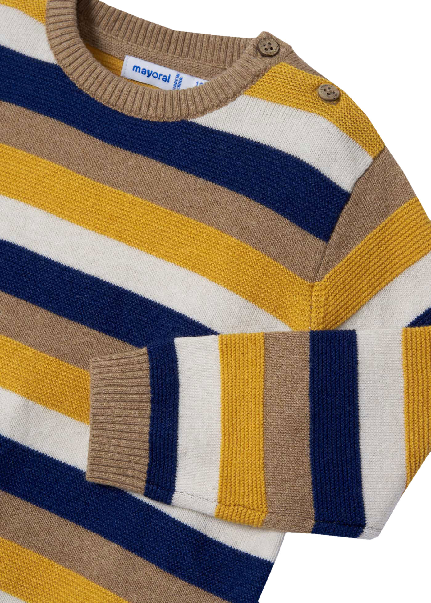 Produktinformationen "Sportlich schicker Strickpullover in Dkl Blau, Senfgelb, Beige, Wollweiß gestreift von MAYORAL 2303"