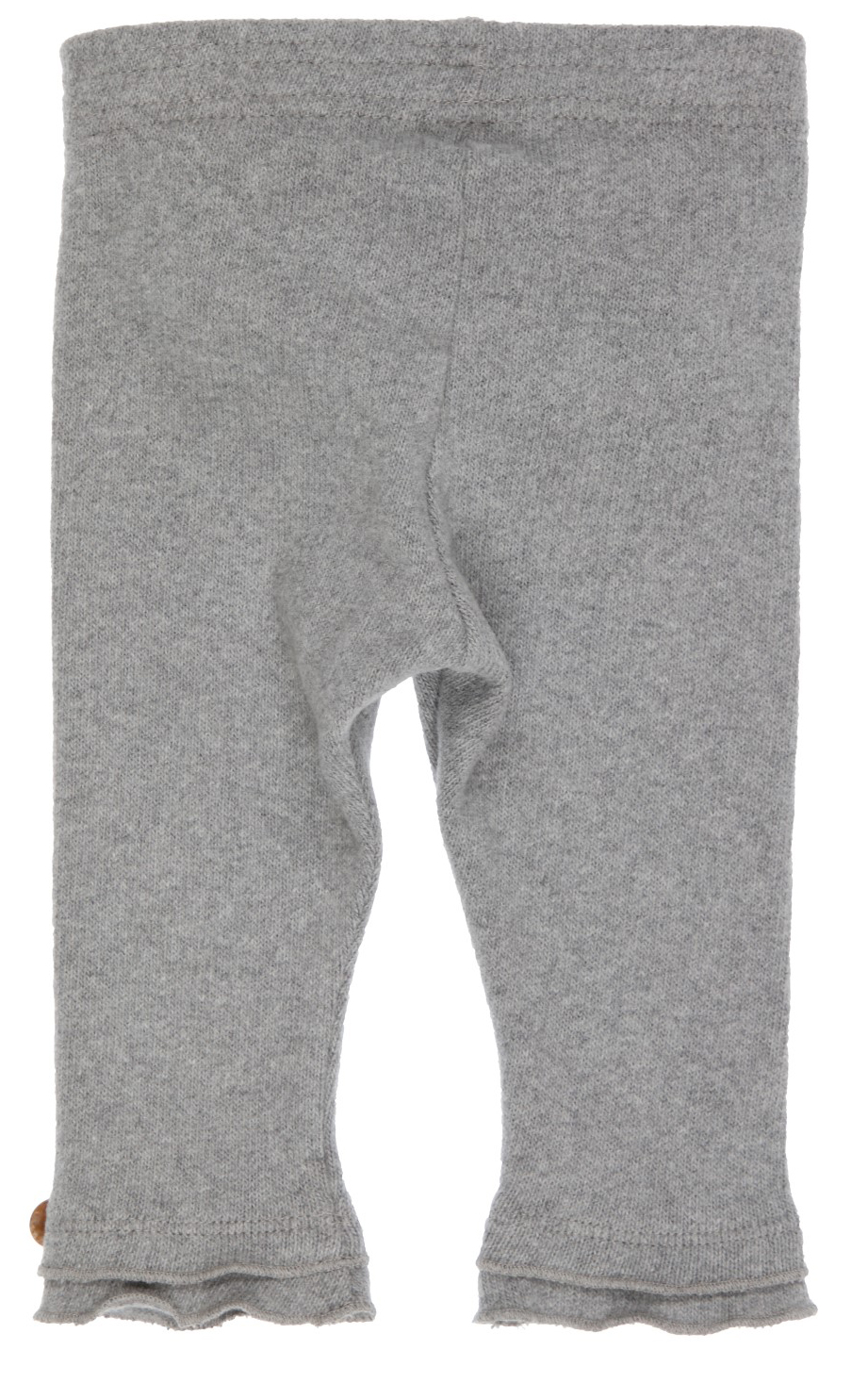 Schicke und ganz schlicht gehaltene Strickleggings aus kuschelig weichem Glattstrick / Feinstrick in einem Steingrau Melange, mit elastischem Schlupfbund und Volantabschluß, von dem belgischen Familienunternehmen GYMP.