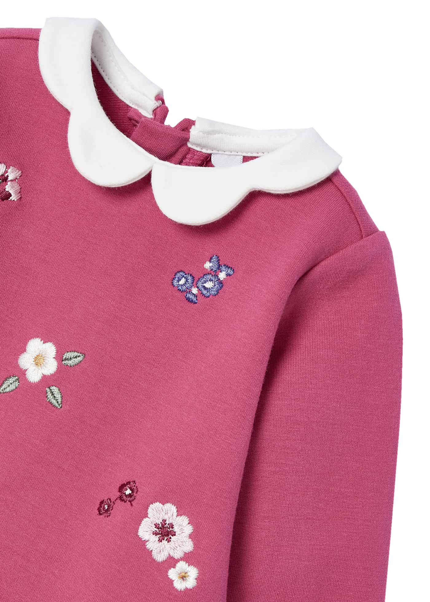 Süßes Sweatkleid in A - Linie, Matt Pink mit Blüten bestickt & Bübchenkragen von MAYORAL 2803