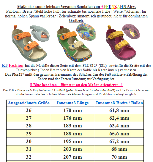 Absolut flexible und ganz leichte Sandale aus rein veganen und waschbaren Materialien, mit weich abgepolsterten Riemchen über den Vorfuß und der Ferse bzw der Fessel, mit einem unterlegten Klett optimal an den Fuß anzupassen, eine super angenehm sitzende Sandale für eher schmalere Füße von RICOSTA Barefoot. > Bitte beachten Sie die im Bild angegebenen Maße, um unnötige Rücksendungen zu vermeiden. Bei Fragen wenden Sie sich gerne vor dem Kauf per E-Mail an uns. Ihr Team KJ Fashion! < Modell: Avenue 504200902 - 170 Nautic / Navy Blau mit Gelb abgesetztMaterial: High Tech Materialien, schnell trocknend | Futter / Innen: Textil | Deccksohle: Mikrofaser | Sohle: Gummi Paßform: Leistenbreite (Standfläche Fuß - als Breite bezeichnet ) Schmal bis Mittel | Weite ( beschreibt das Volumen auch als Spannhöhe bezeichnet) : Flach bis Mittel - sehr gut zu regulieren | Mittelfuß: normal bis schmal | Ferse: normal bis schmal | Zehenbox: Anatomisch geformt, nicht für dominante Großzehe - sehr gut quer und längs flexible Sommerschuhe, mit offen gearbeiteter Spitze und offener Ferse - weiche Barfußsohle / Minimalsohle quer und längs flexibel ohne Sprengungen - die breiten Riemchen sind ganz weich abgepolstert und schön breit in der Auflagefläche um Druckkstellen zu vermeiden - breiter Vorfuß als optimale Auflagefläche für den gesamten Fuß, ergonomische Form für ein optimales Laufgefühl - mit Klettstreifen im Bereich des Vorfußes zu schließen, so optimal an die Spannhöhe des Kindes anzupasssen !! Bitte auch Sandalen bei empfindlichen Füßen mit Söckchen tragen um zu starke Reibung an der ungeschützten Haut zu vermeiden - beim probieren bitte IMMER mit Socken!!