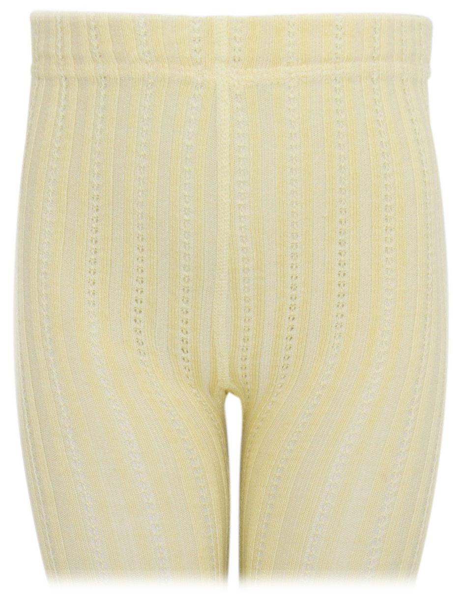 Ganz weiche Strumpfhose aus matt Natur gelbem Strukturstrick aus ganz weicher und anschmiegsamer Bambusfaser, sehr gut für Kinder mit Neurodermitis oder generell mit empfindlicher Haut geeignet, durch die extrem glatte und weiche Faser, von MELTON aus Dänemark.