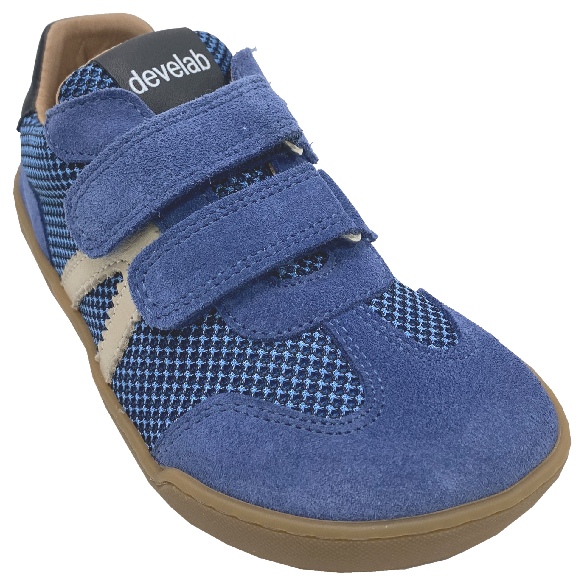 Produktinformationen "Trendige Barfuß Sneaker Doppelklett in Blau aus Leder + Mesh Besatz von DEVELAB 43043"