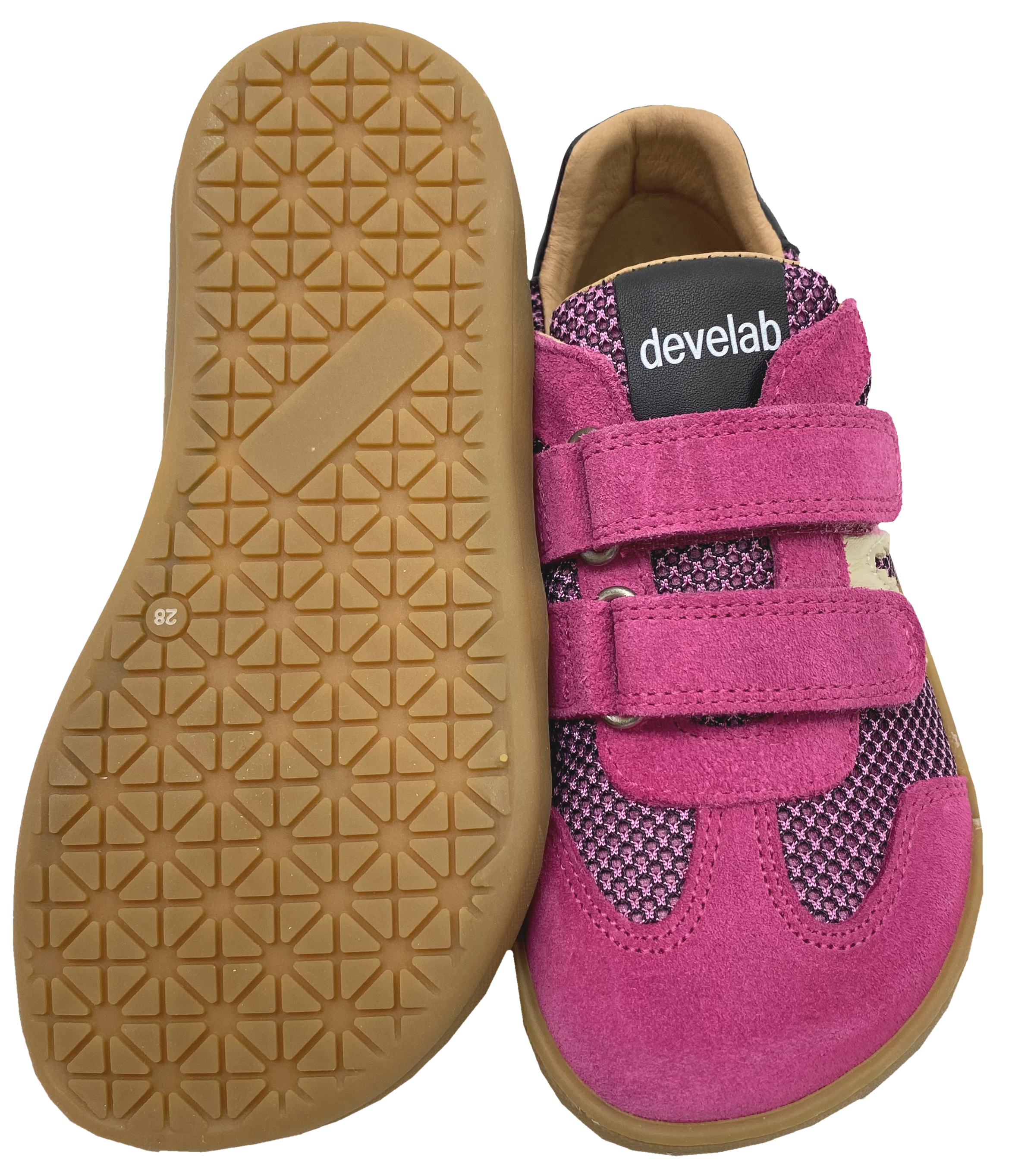 Produktinformationen "Trendige Barfuß Sneaker Doppelklett in PINK aus Leder + Mesh Besatz von DEVELAB 43043"