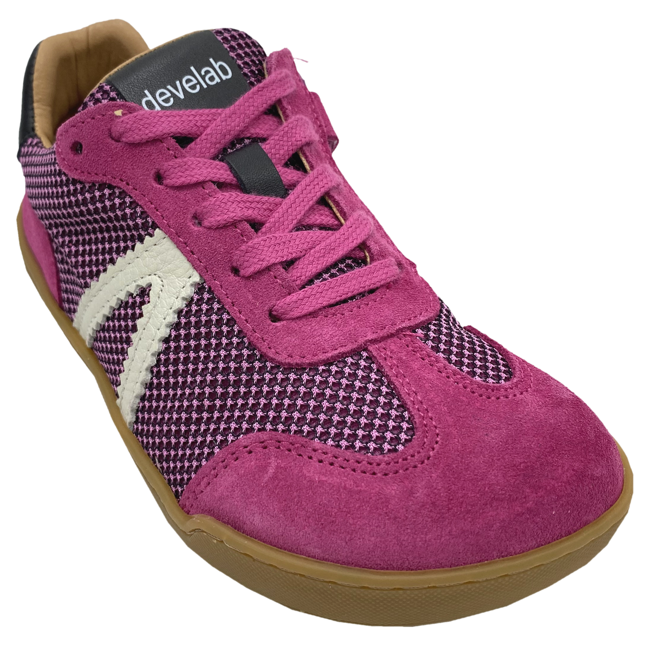 Produktinformationen "Trendige Leder + Mesh Barfuß Sneaker Zipper & Schnürung von DEVELAB 43041 in Fuchsia / Pink"