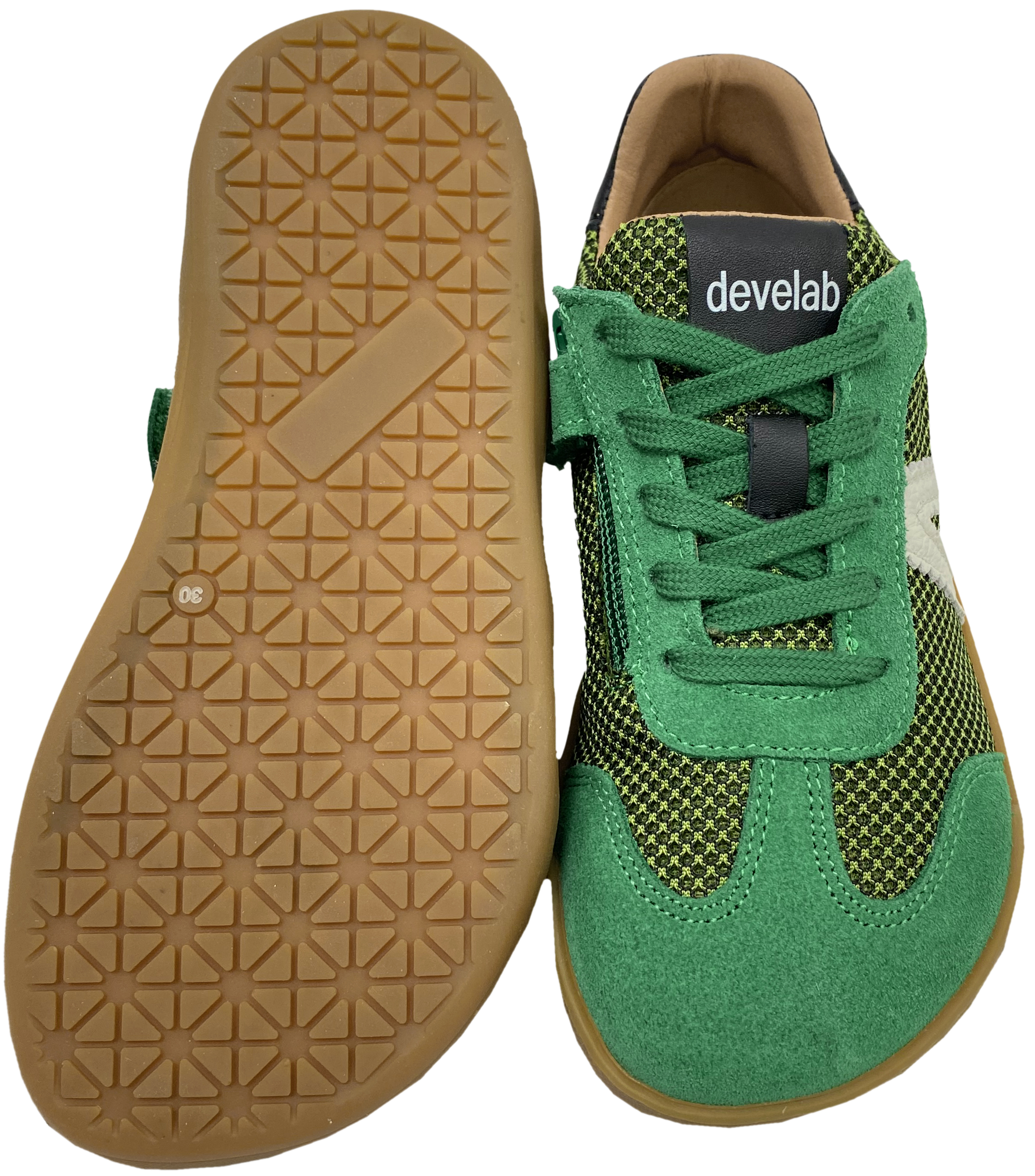 Produktinformationen "Trendige Leder + Mesh Barfuß Sneaker Zipper & Schnürung von DEVELAB 43041 in Grün"