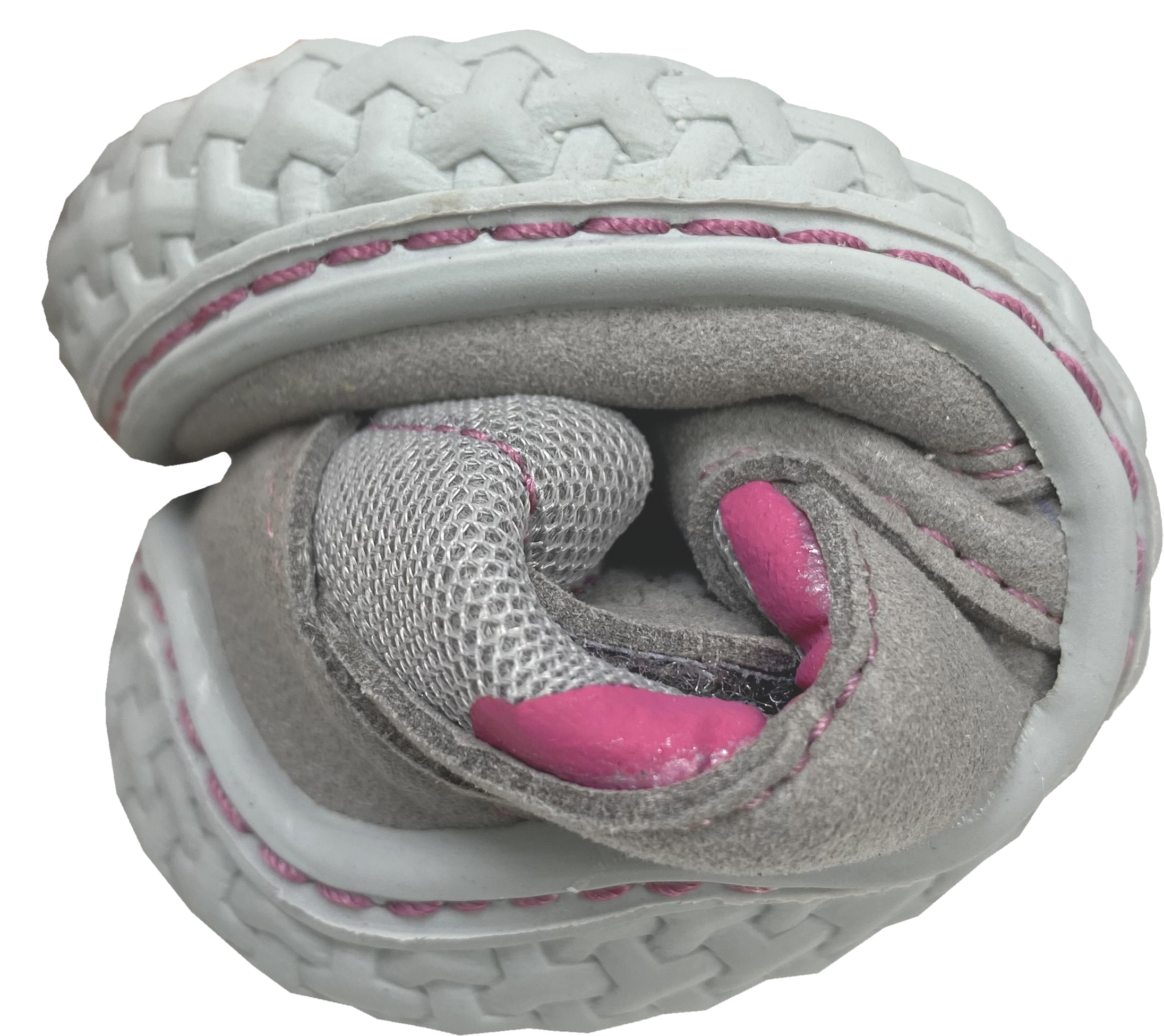 - super flexible Gummisohle mit leichtem Profil, an der Ferse und der Spitze hoch gezogen als Schutzkante