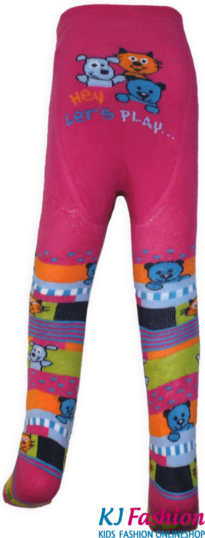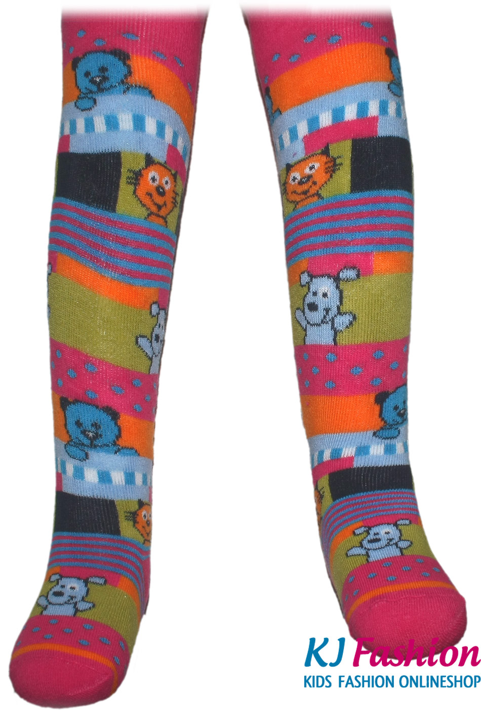 Warme Thermostrumpfhose aus BW Vollfrottee in Pink mit bunten Katzen von MAXIMO 080800