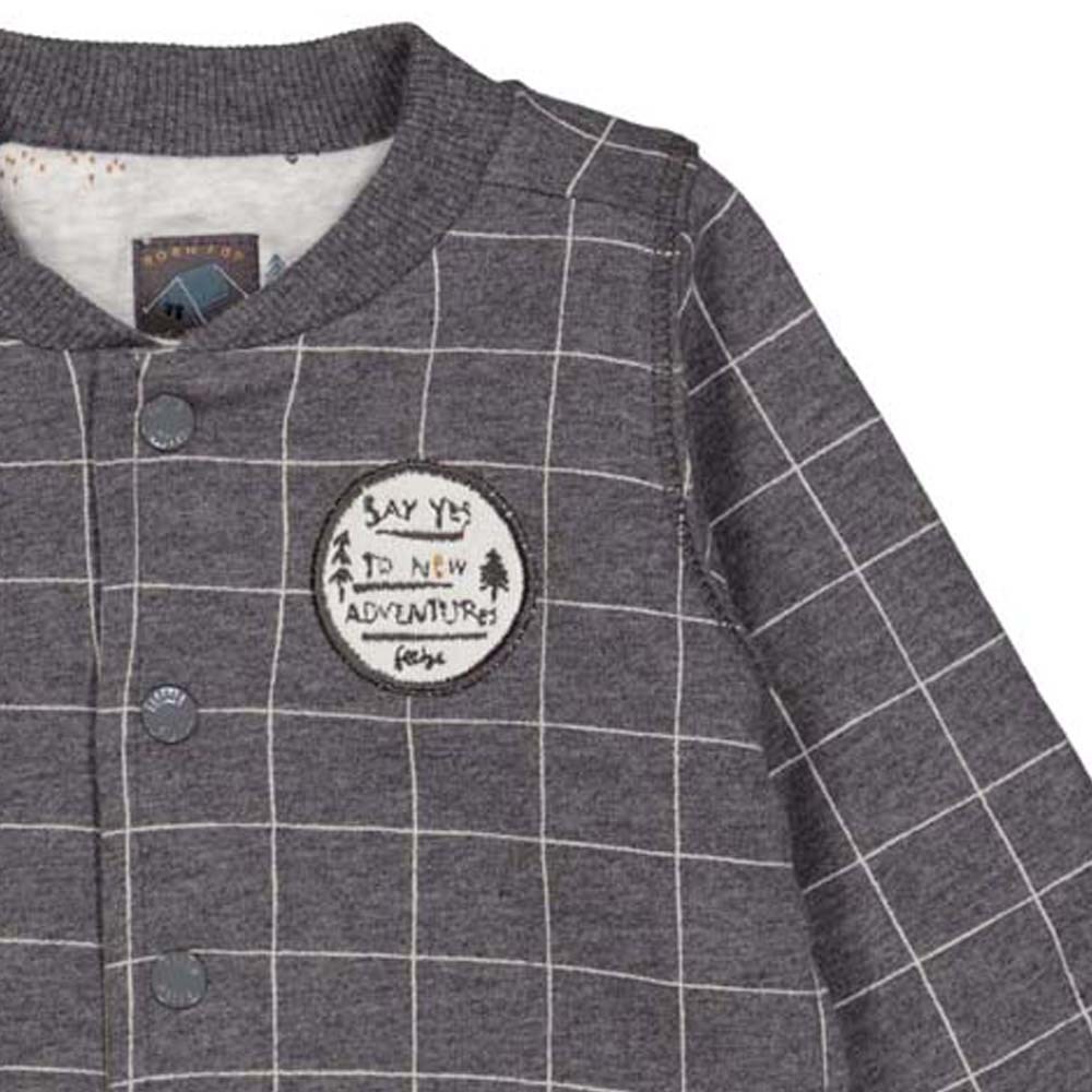 Wendejacke aus BIO BW Sweat in Grau kariert / Hell Beige AOP von FEETJE *Griddly Bear* 0398
