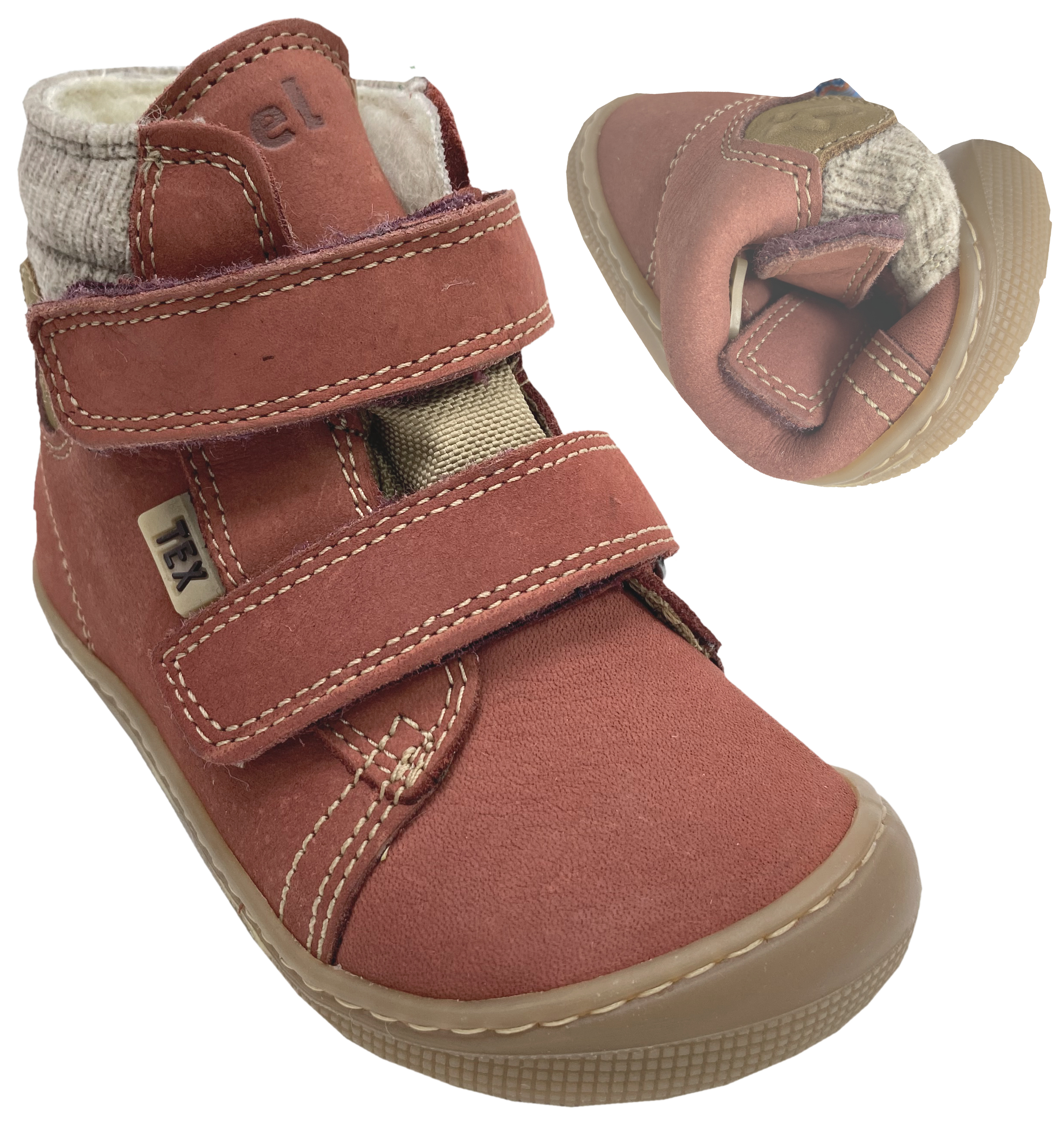 - Barfußschuh gefüttert / Winterstiefel in höherer Form bis gut über den Gelenkknochen gehend