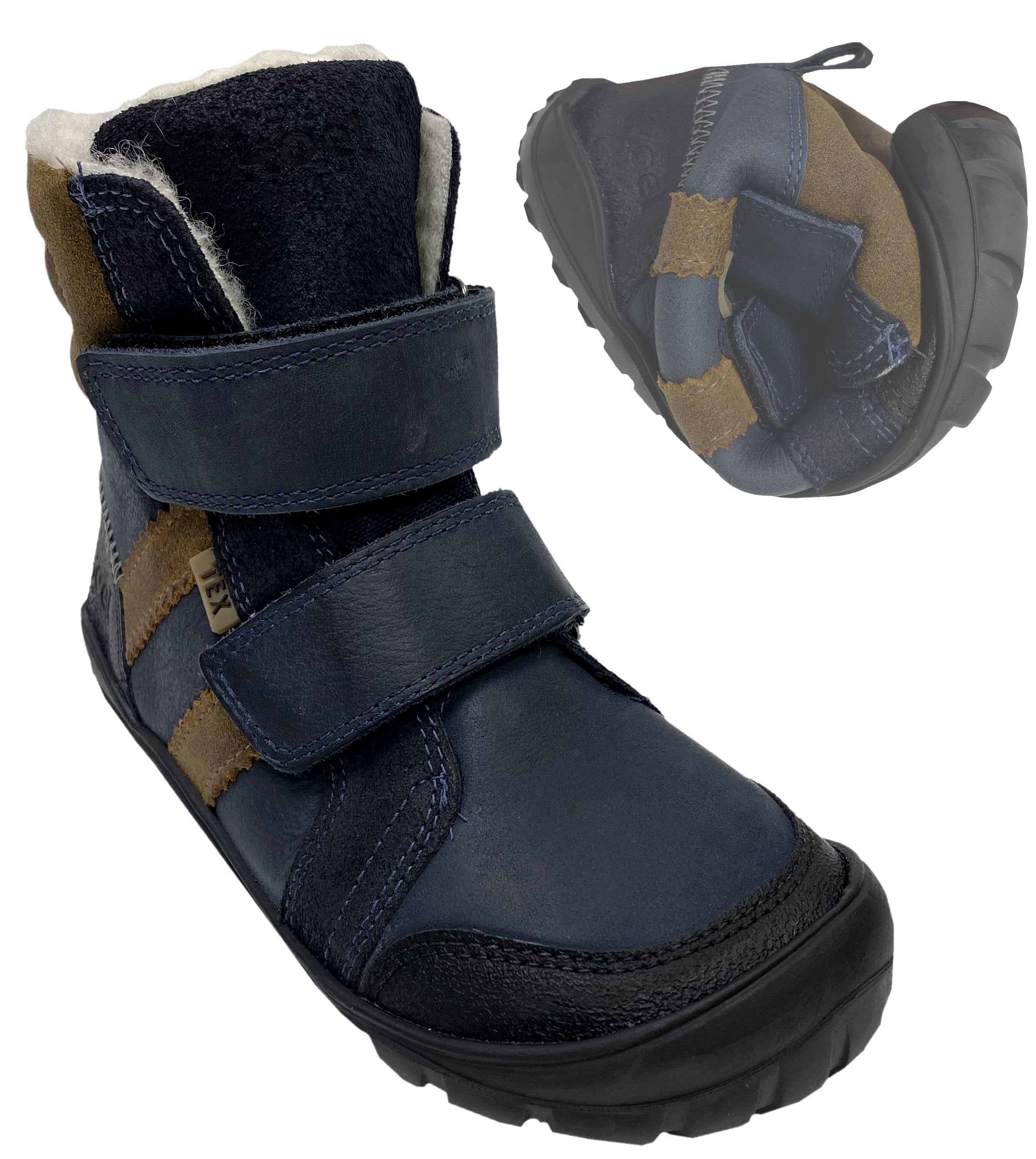 Produktinformationen "Winterstiefel /Barfußschuhe v. KOEL MILO 3.0 Schurwollfutter, Hydro Leder in Navy Cognac 04T032.232"