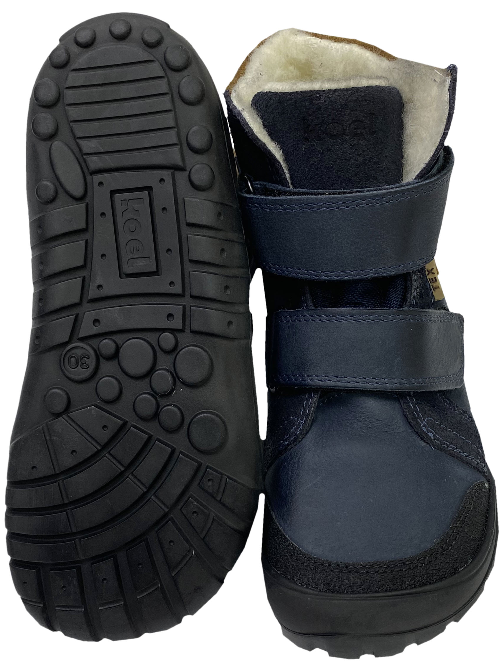 Robuste Barfußschuhe / Winterstiefel mit Tex Membran aus Glattleder mit Doppelklett zu öffnen, innen mit Schurwollfutter ausgelegt, minimal quer und längs flexible Gummigrippsohle auf dem mittelbreiten Leisten ( breite Zehenbox, normale Paßform) von KOEL Barefoot. > Bitte beachten Sie die im Bild angegebenen Maße, um unnötige Rücksendungen zu vermeiden. Bei Fragen wenden Sie sich gerne vor dem Kauf per E-Mail an uns. Ihr Team KJ Fashion! < Modell: DEMIL Wool 07T053.102 - 110 BlueMaterial: Leder - stark Wasserabweisend dank Tex Membran zwischen den beiden Schichten | Innen: Schurwolle Mulesing Frei | Sohle: Gummi Gripp Sohle ( Bernardino Sohle)Weite ( diese bezieht sich auf das Volumen ) für einen normal / mittel hohen Spann geeignet | Leisten -Breite (Stehfläche Fuß) normal | Mittelfuß: normal | Ferse: normal | Zehenbox: anatomisch gerundet geformt - Barfußschuhe für die kalten Tage bis etwa Mitte der Wade gehend für einen guten Schutz vor Schnee / Regen - abgepolsterter Einstieg, innen mit weicher, nicht zu voluminöser Schurwolle ausgelegt, zwischen den beiden Materialien mit einer Tex Membran gearbeitet ( Bitte beachten das Tex Membran nur funktionieren wenn es außen kälter als im Schuh ist, und diese GUT durchtrocknen kann ) - mit zwei Klettstreifen zu öffnen, optimal an den Fuß anzupassen - herausnehmbare, mit Wollfilz bezogene Innensohle - flexible Gummisohle mit gutem Gripp Profil, durch das Futter sowie die TEX Membran ist die Sohle weniger knautschig weich als Modelle ohne Futter und ohne Tex, durch Bewegung weicht sich das Material nach - an der Spitze im Zehenbereich ist die Sohle hochgezogen als Schutzkante Der optimale Schuh für die kalten Tage von KOEL Barefoot. !! Bitte beachten - für extreme Nutzung durch Bobby Car / Laufrad / krabbeln mit der Spitze etc bitte geeeignete Schutzkappen über die Schuhe ziehen - da diese dafür nicht ausgelegt sind !! !! TIP bei kalten Füßen - tragen sie am besten Socken die nicht zu eng am Fuß sitzen aus Wolle, da diese sich am Fuß des Kindes nicht so schnell feucht und sich damit kalt anfühlen wie eine Socke aus Baumwolle - auch Funktionssocken leiten die Feuchtigkeit des Fußes hervorragend ab, so das das Kind nicht so schnell kalte Füße durch feuchte Socken bekommt -> Hier geht es zu unseren Woll und Funktionssocken <