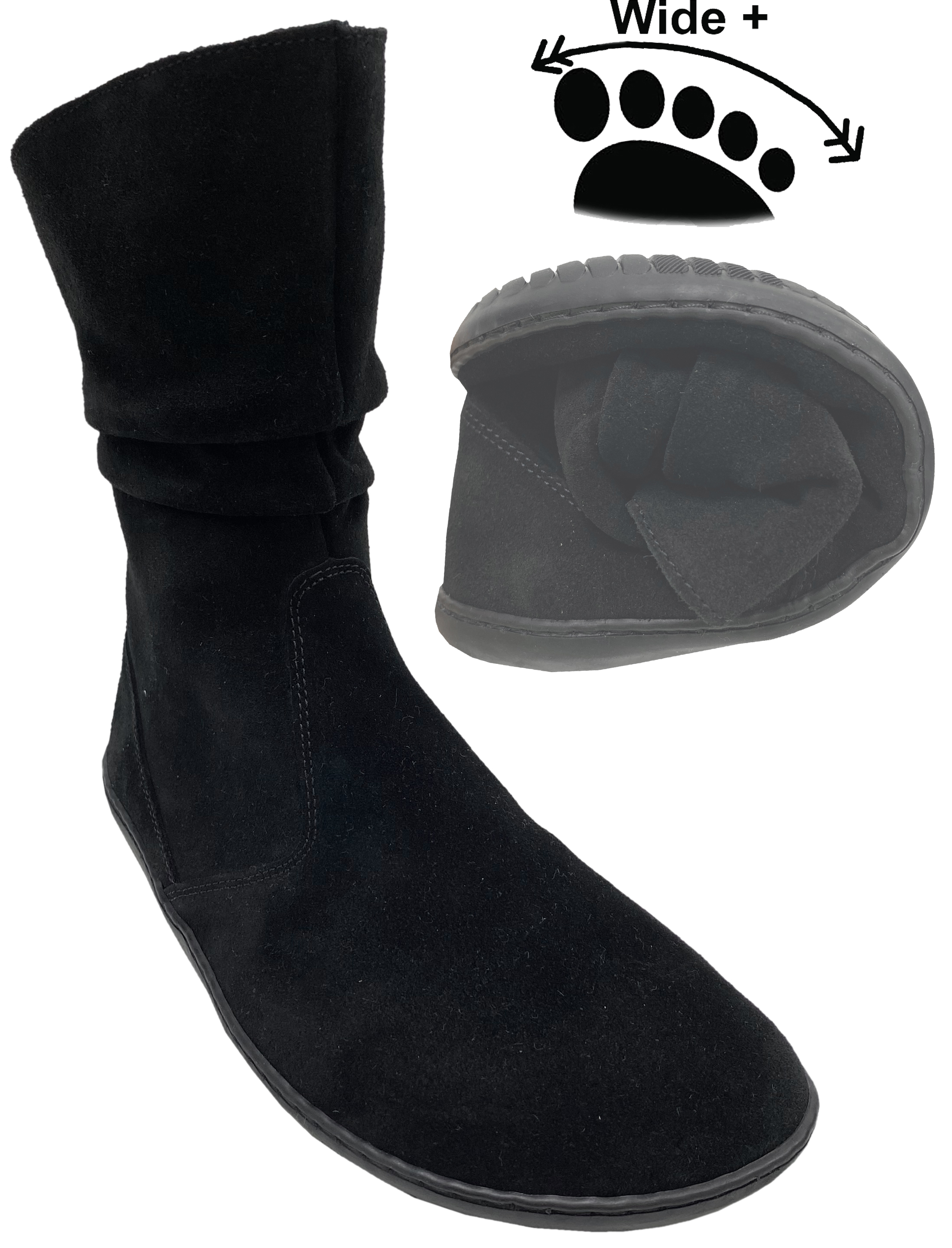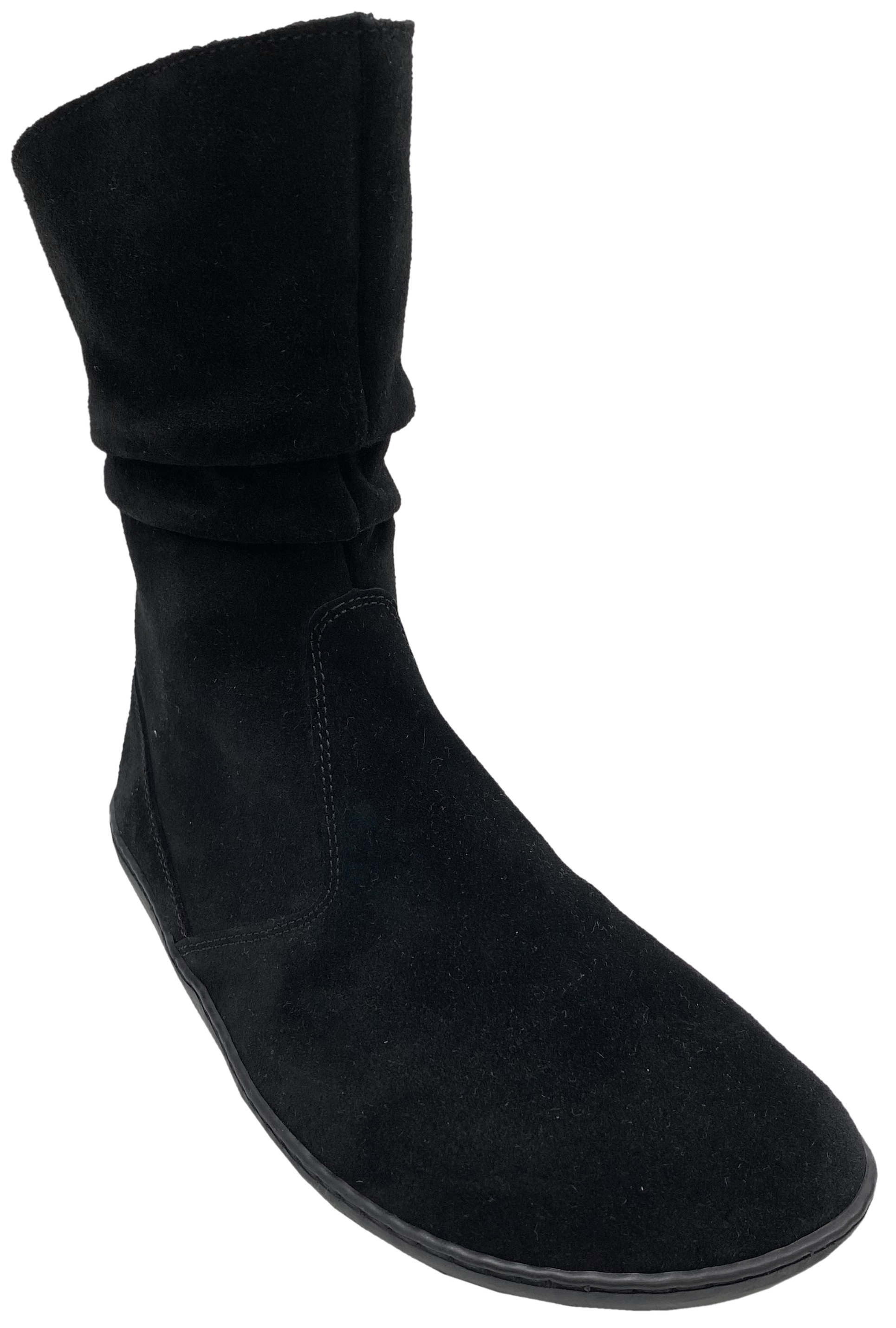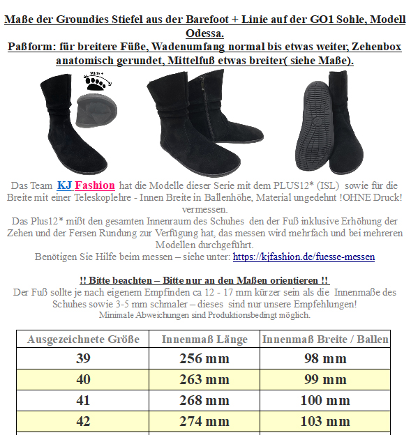 Super weiche und absolut bequeme Stiefel / Barfußschuhe ( Nicht regulierbar / nicht fest an den Fuß zu justieren, daher als Komprommiss einzuordnen) , aus weichem Velourleder, ungefüttert, Modell Odessa auf der GO1 Barefoot+ Sohle mit der anatomisch geformten Zehenbox, einem komplett neutralem Fußbett ohne jegliche Erhöhungen - für ein bequemes Barfuß - laufen - Gefühl.