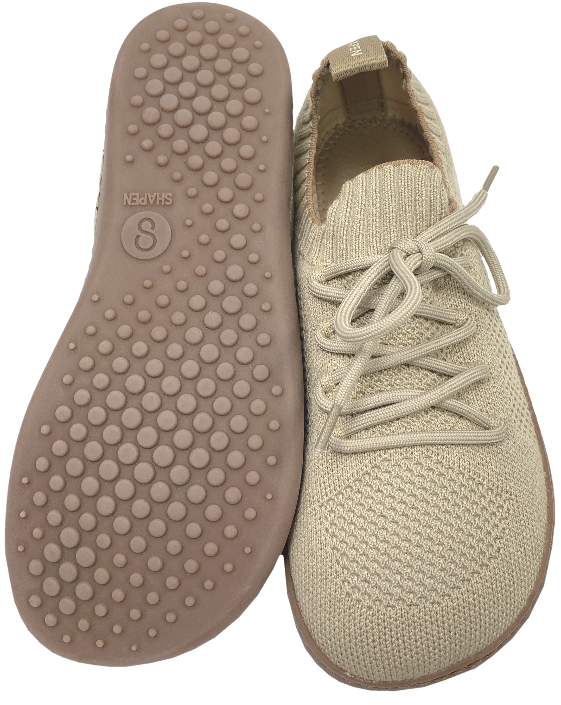 Produktinformationen "Luftig leichter Schlupfschuh / Barfußschuh von SHAPEN aus Strickgewebe Modell WEAVIN in Beige"