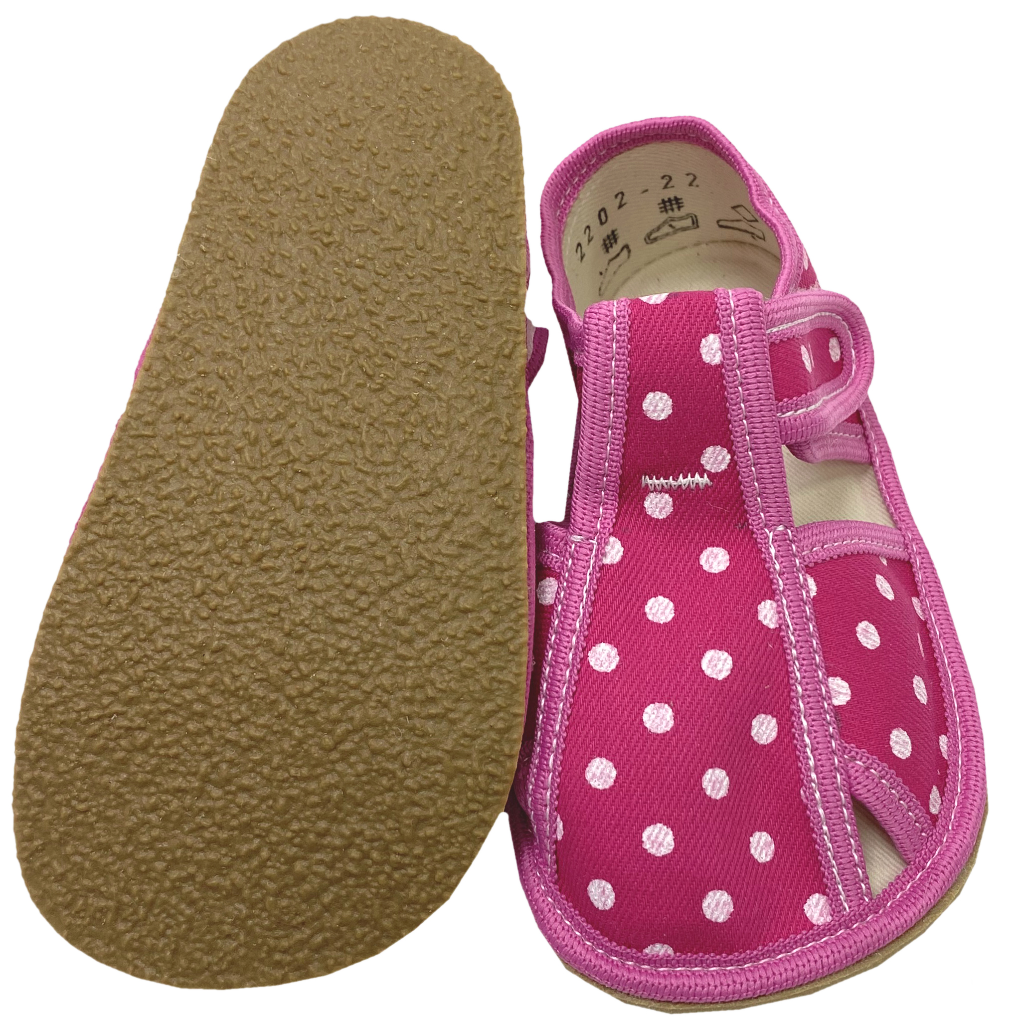Produktinformationen "Hausschuhe / leichte Canvas Sandalen mit Klett / Barfußschuhe von BABY BARE Modell Pink Dot"