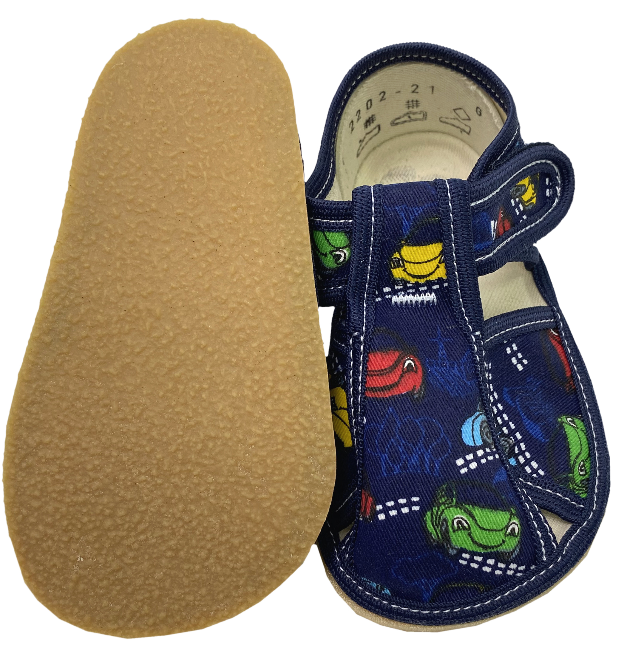 Produktinformationen "Hausschuhe / leichte Canvas Sandalen mit Klett / Barfußschuhe von BABY BARE Modell Navy CARS"