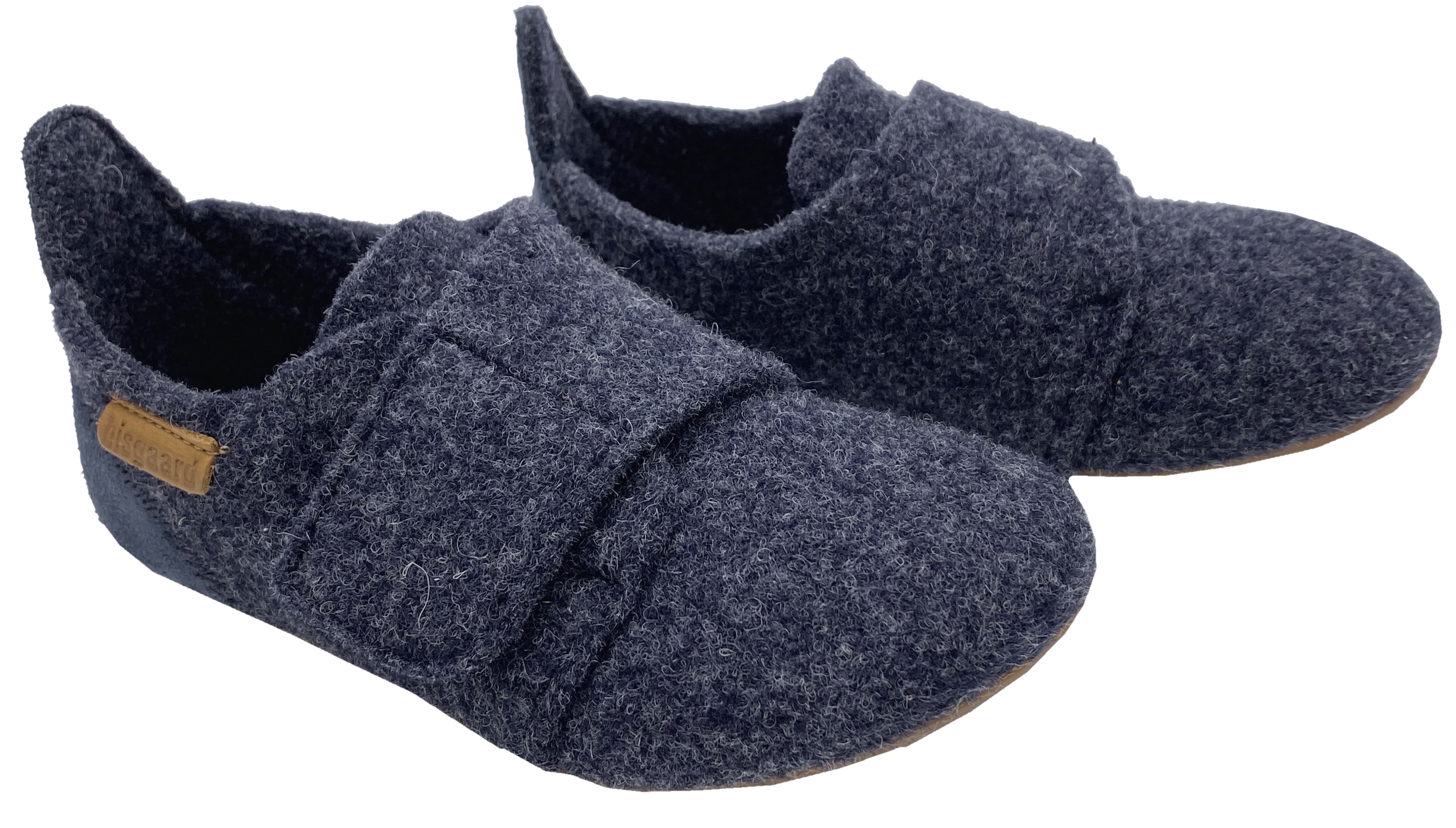 Wollfilz Hausschuhe mit Klett & rutschhemmender Gummisohle von BISGAARD in DKl Blau