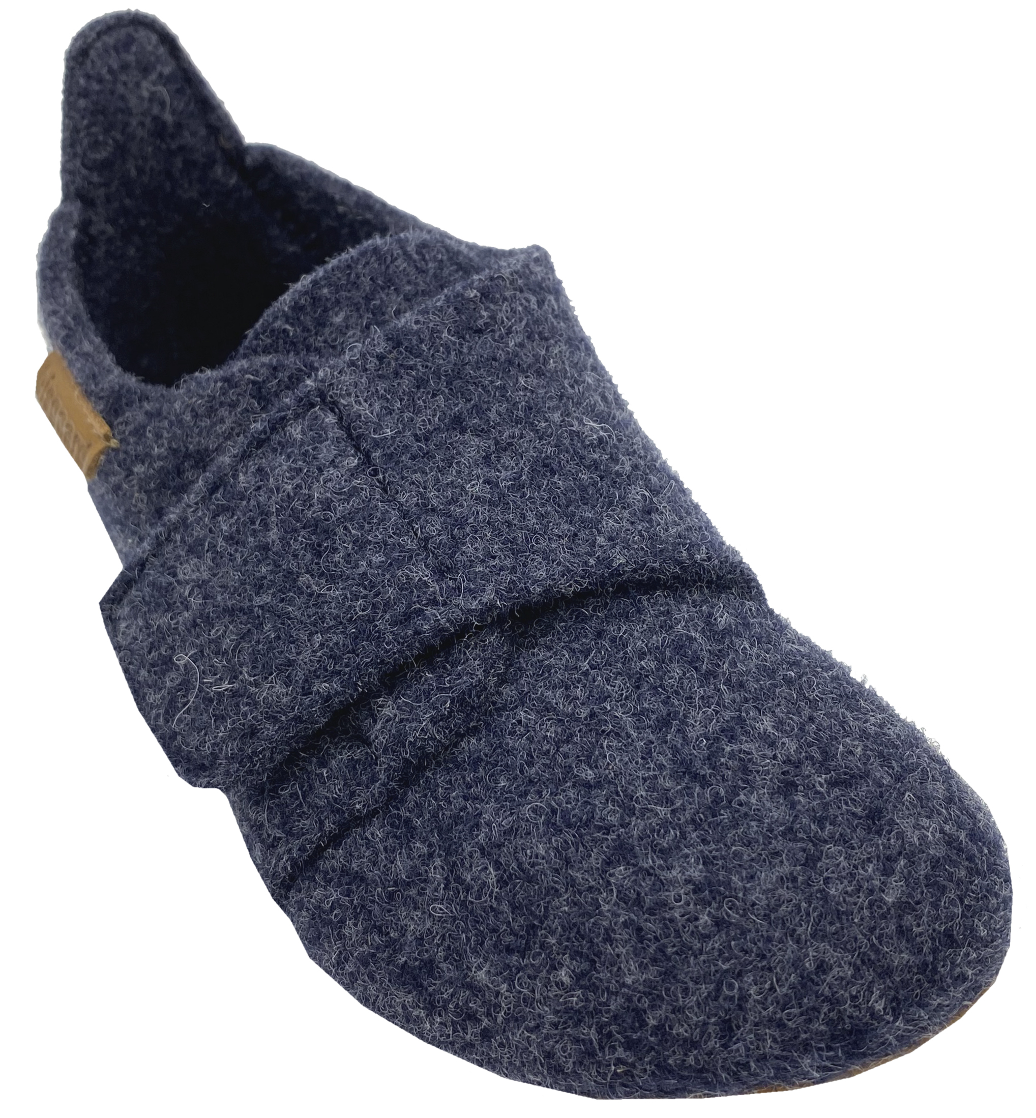 - flache Hausschuhe aus dichtem Wollfilz, mit breitem Klett gut an den Fuß anzupassen