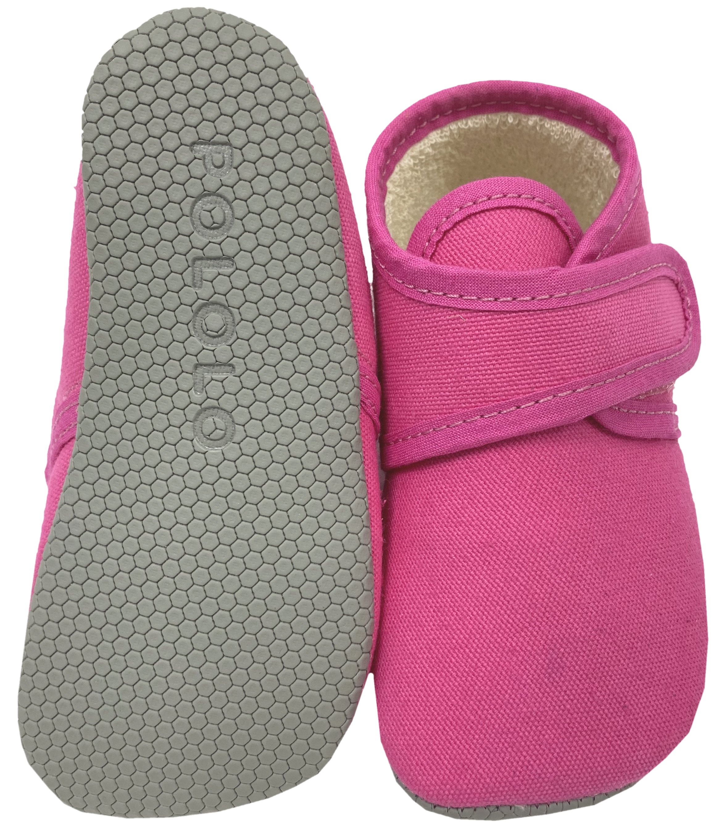 Knautschige Barfußhausschuhe mit Klett BIO BW + Anti Rutsch Sohle *Pink Uni* von POLOLO