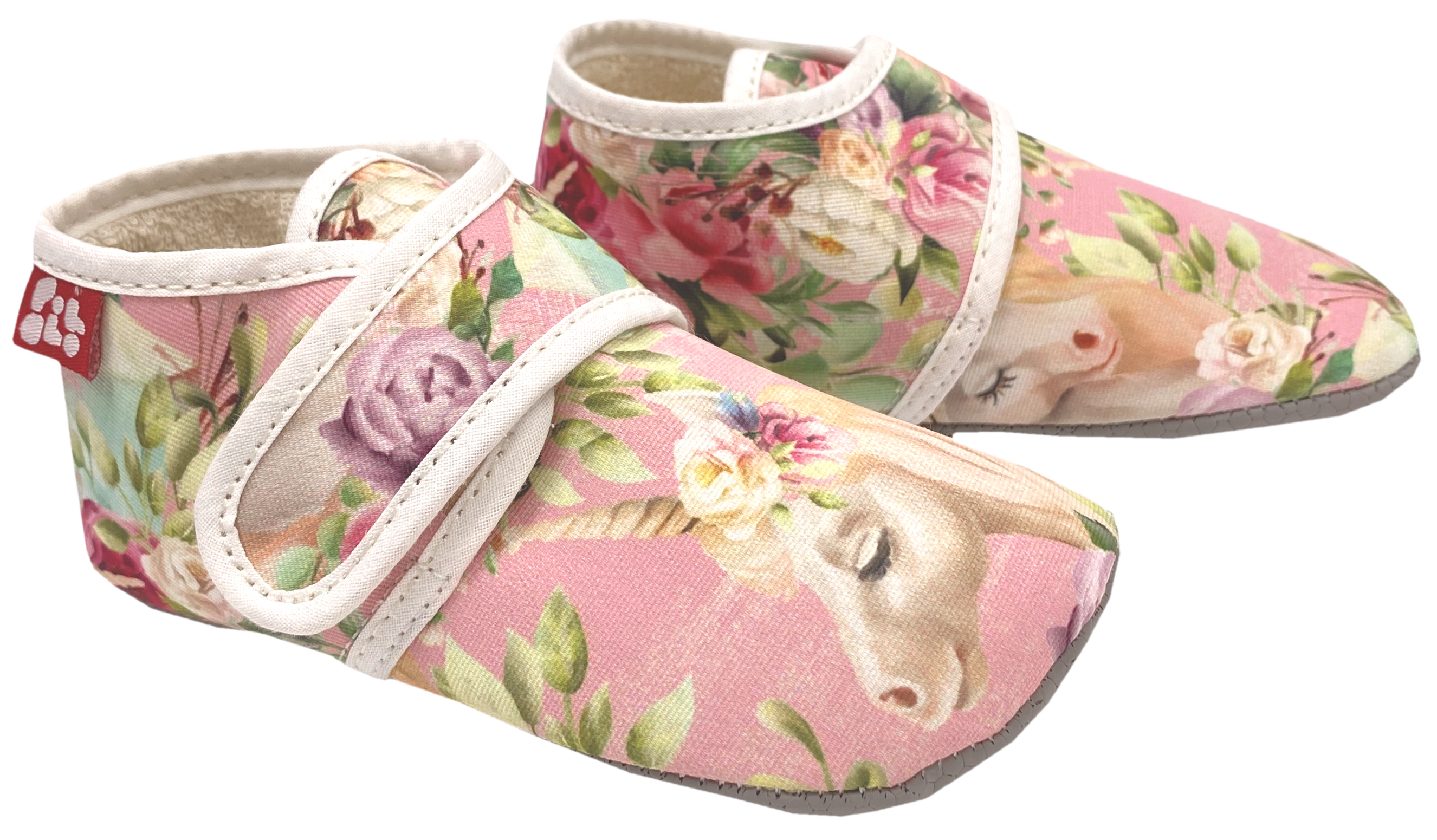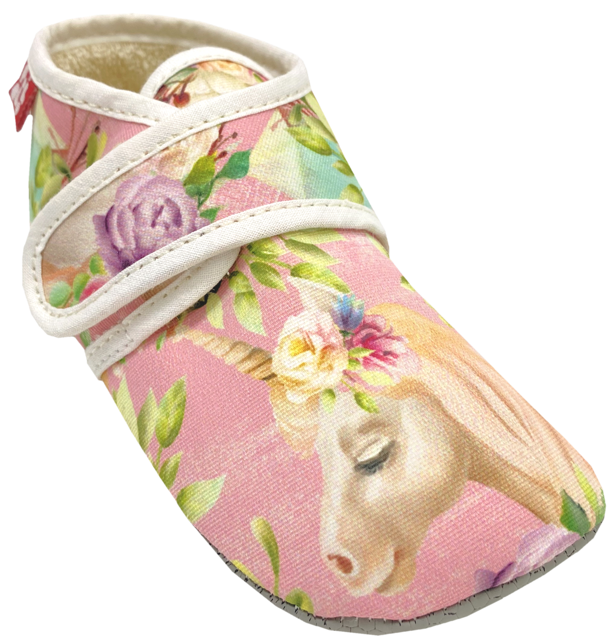 Knautschige Barfußhausschuhe mit Klett BIO BW + Anti Rutsch Sohle *Einhorn Rosa* von POLOLO