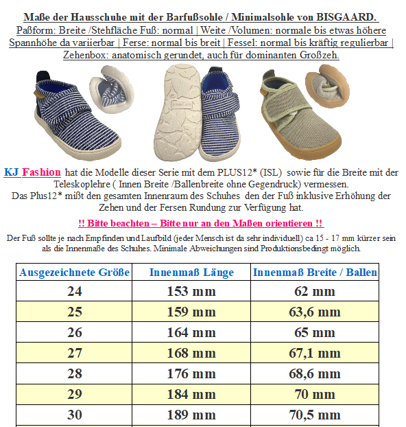 Minimalistische Wollschuhe mit Klettverschluß, weicher Ledersohle mit Gummibesatz, breiter Zehenbox - für die ersten Laufversuche an trockenen Tagen im Freien oder als wärmender Schutz für zu Hause - dafür eignen sich super die Wollslipper von MIKK LINE. !!Bitte die Maße der Schuhe beachten, Größen sind nicht genormt, um so ein unnötiges hin und her senden zu vermeiden - bei Fragen mailen Sie uns einfach vor dem Kauf an - Ihr Team KJ Fashion !! Modell: Non Slip Prewalker / Home Slipper 20007 Dunkles WaldgrünMaterial: 100% Wolle / Wollfilz | Sohle: Nubukleder und weiches Gummi zweigeteilt eingenähtPaßform / Leisten ( Stehfläche des Fußes) : für normal breite Füße geeignet | Ferse: normal | Mittelfuß normal | Zehenbox: anatomisch geformt, nicht für sehr ausgeprägten dominanten Großzeh | Spannhöhe: Normal bis etwas höher (regulierbar) - weiche und super flexible sowie leichte Schuhe aus Wollfilz mit minimalistischer Leder Sohle mit rutschemmenden Gummibesätzen - breiter Klettverschluß zum regulieren und anpassen an den Fuß - breite Zehenbox, aber eher rund verlaufend, nicht für stark ausgeprägte V Form - Fersenbereich doppelt genäht für einen guten Halt am Fuß des Kindes - Abschlüsse paspeliert für eine schöne Optik und gute Haltbarkeit Ein prima Schuh für die ersten Laufversuche der kleinen Laufanfänger , an warmen, trockenen Tagen auch prima für draußen um mit den ersten "richtigen" Schuhen noch ein wenig warten zu können. Bitte aber bedenken das es dennoch weiche Wollpuschen sind, Rutschefahrzeug fahren , halten die Schuhe nicht aus auch kein stundenlanges laufen auf Asphalt.