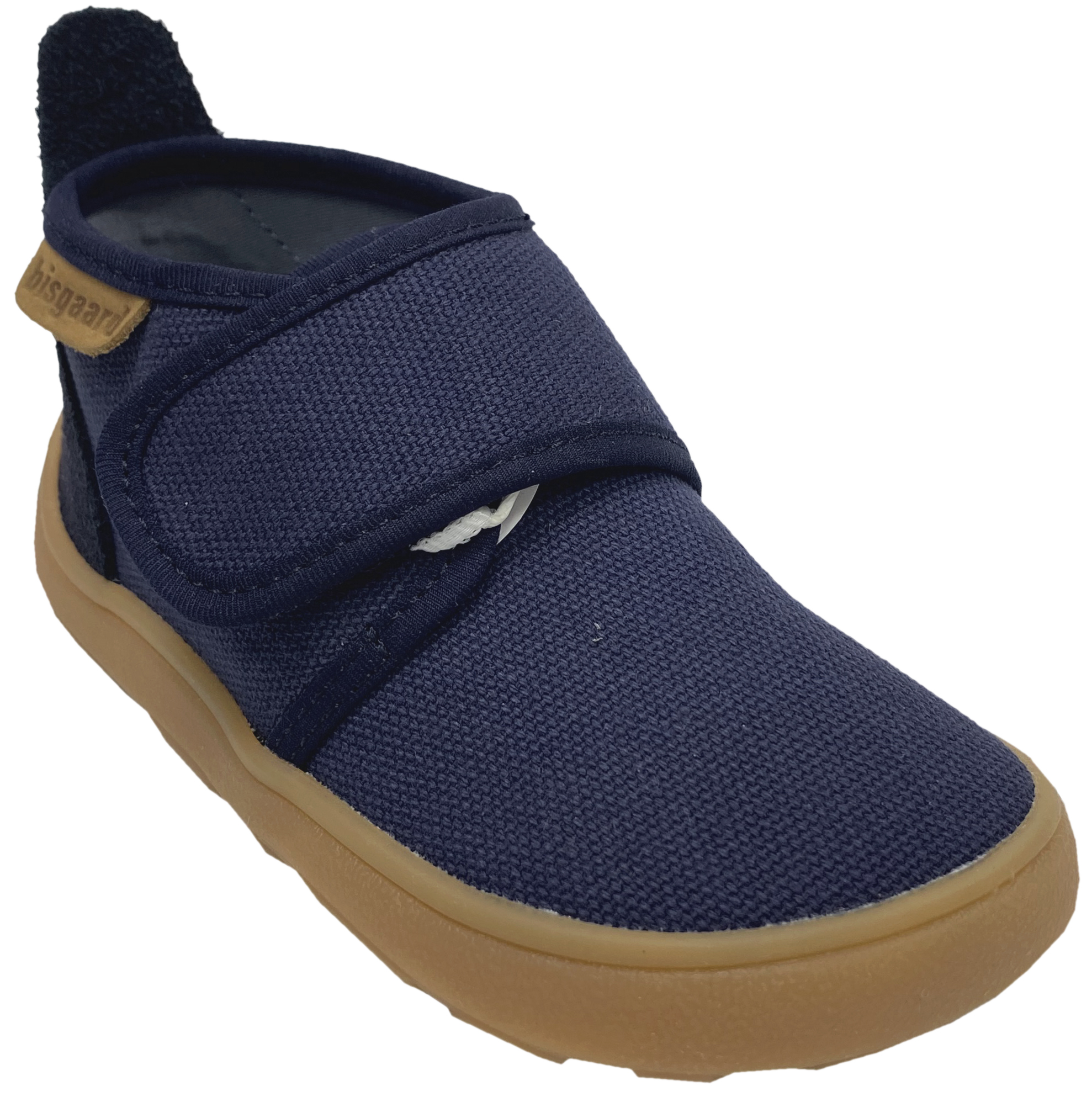 Knautschige Hausschuhe in Marine mit Klett, quer & längs flexible Minimalsohle BISGAARD Basic