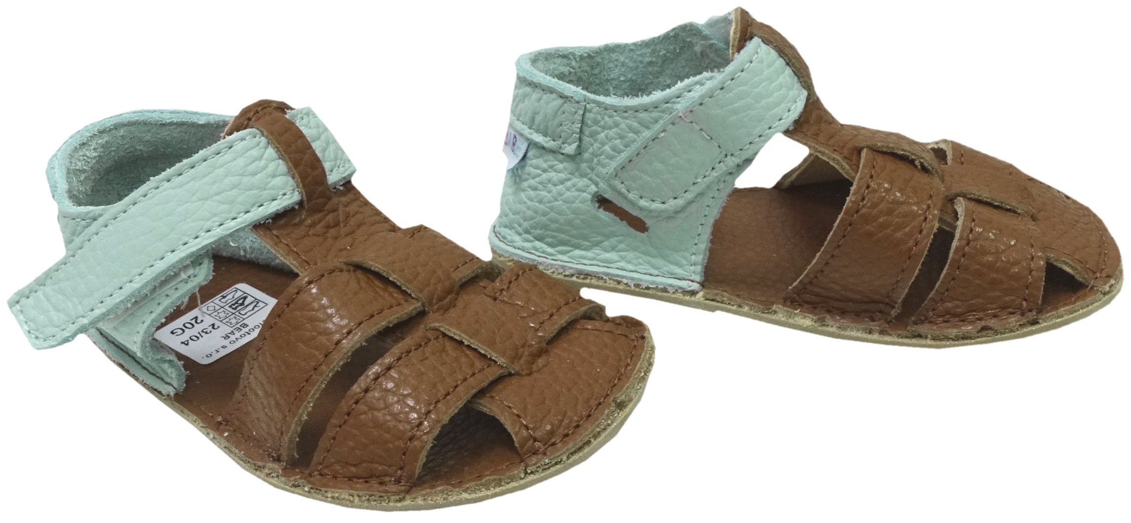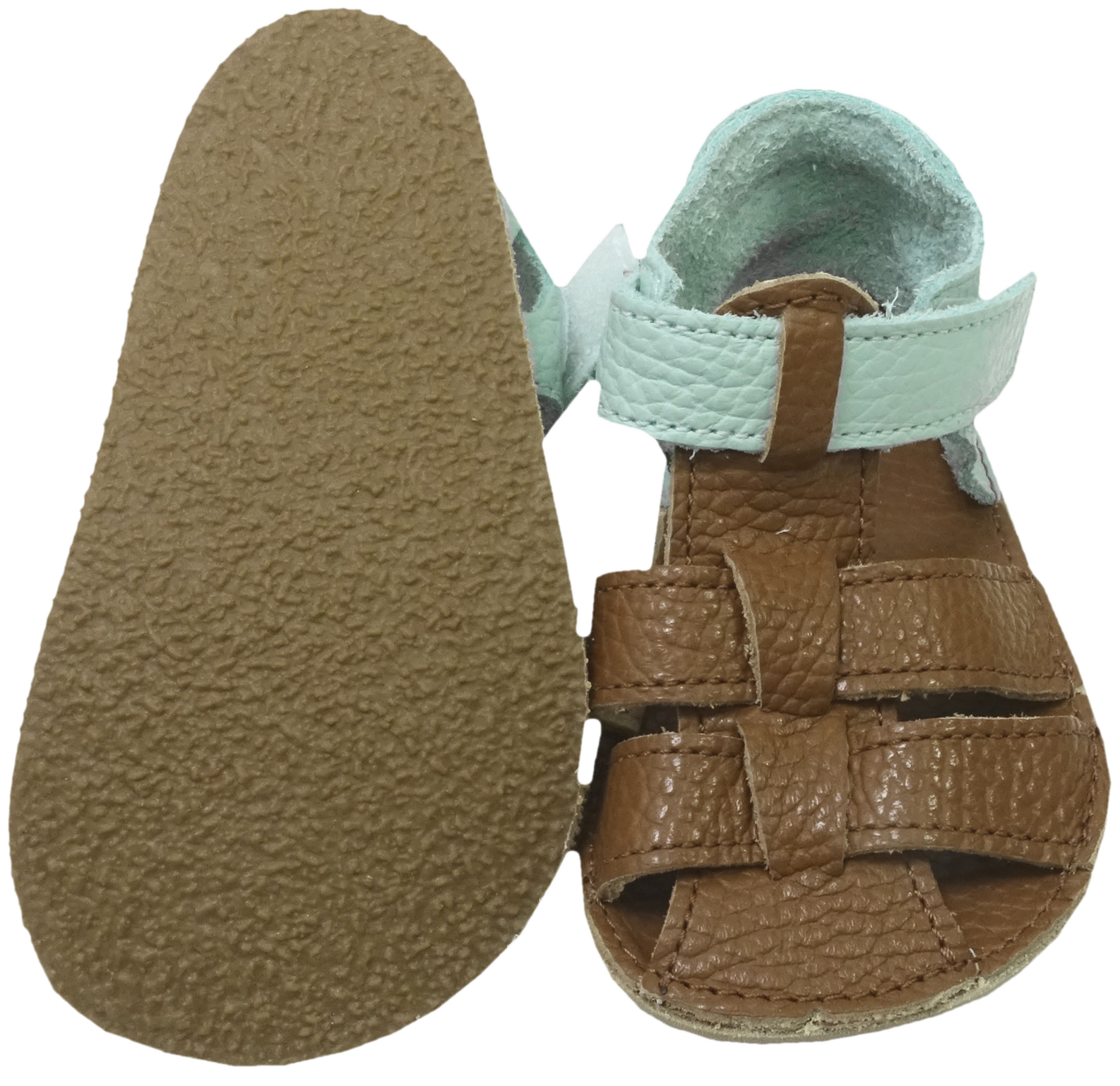 Barfußschuhe / Sandalen 3 mm Krepp Sohle, aus Nappaleder in Braun / Mint BEAR von BABY BARE