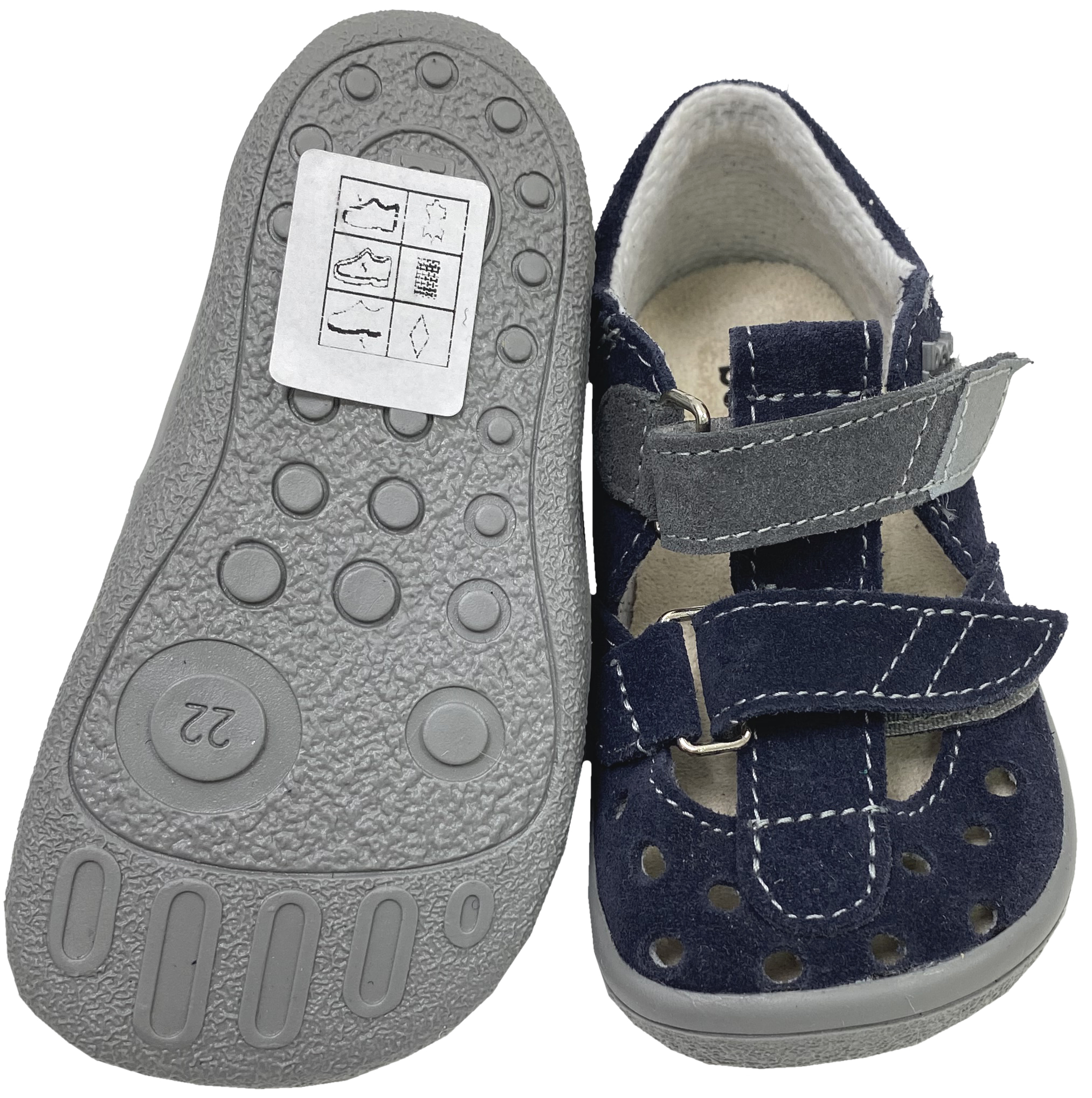 Produktinformationen "Halbsandalen / Minimalschuhe mit Doppelklett in Navy Blau Modell LUCAS von BEDA"