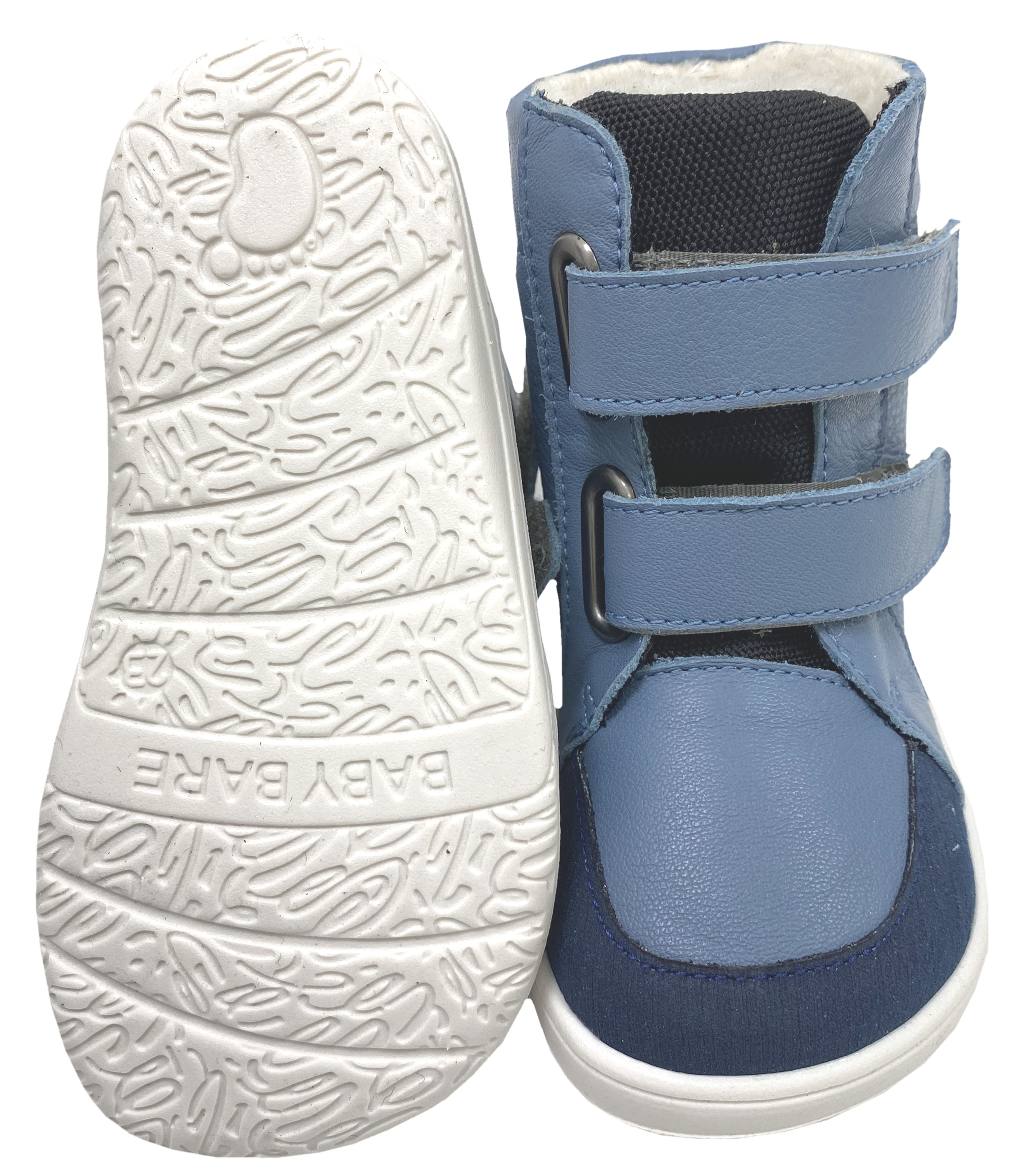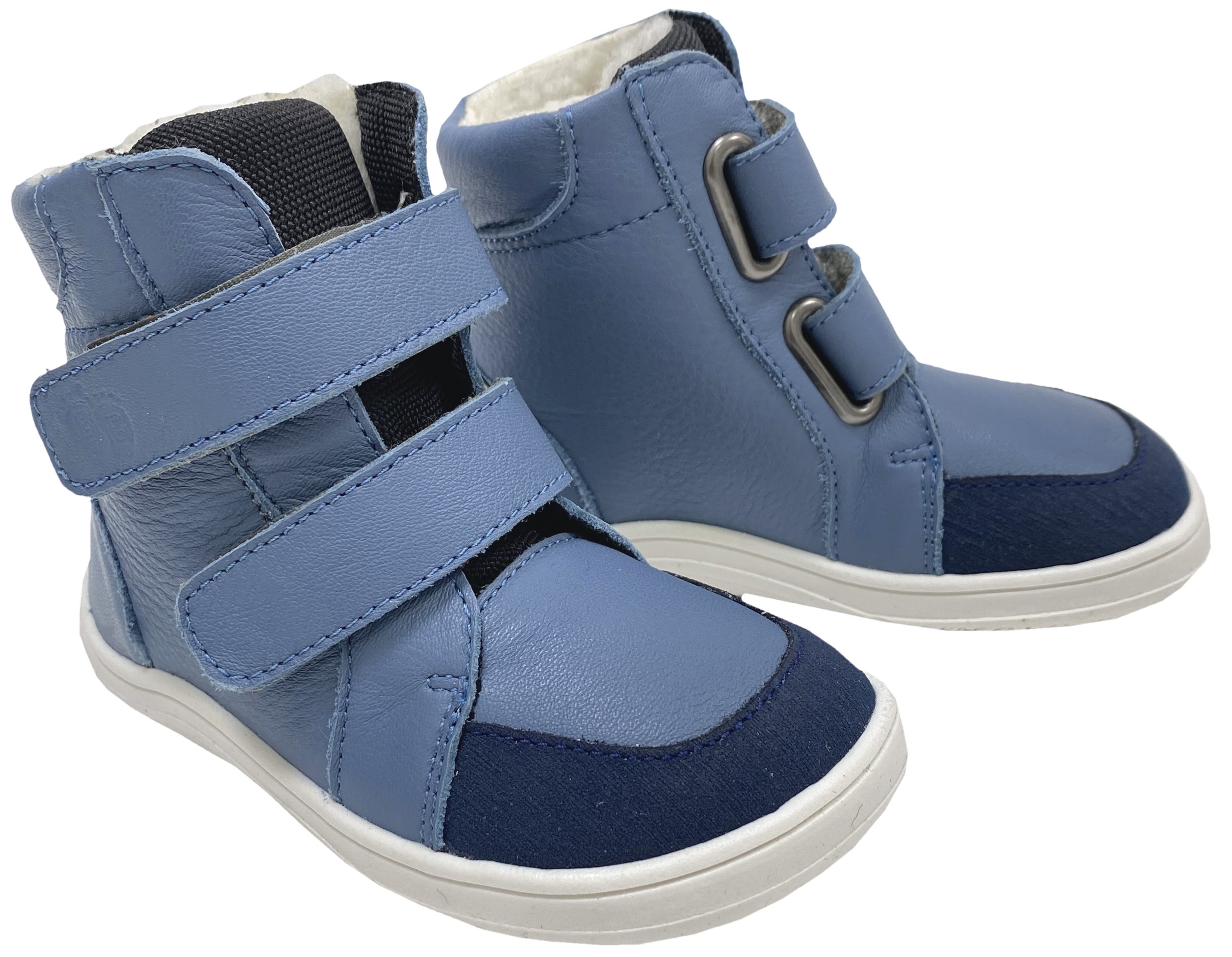 Super leichte und bequeme Stiefel aus weichem Leder mit kuscheligem, textilen Kunstfellfutter, dazwischen mit der Tex Membran gearbeitet, mit Doppelklett zu schließen (ab Gr. 34 mit 3 Klettstreifen), aus der Zentralslowakai von BABY BARE - ein kleiner Produzent von Barfußschuhen mit Minimalsohlen für Kinder.