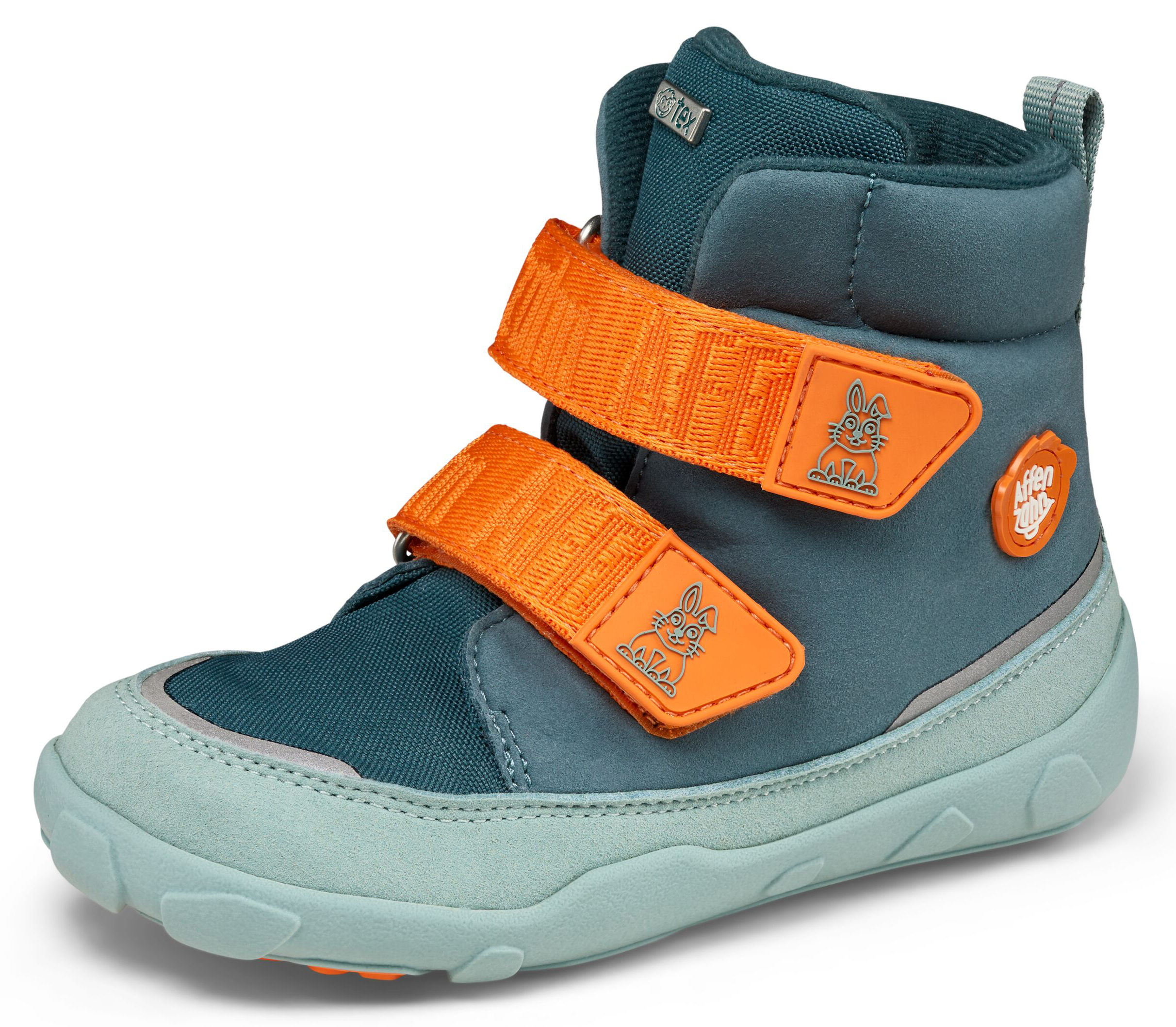 Produktinformationen "Vegane Winterstiefel mit TEX Membran Mid Boot Comfy Hase in Petrol Blau von AFFENZAHN"