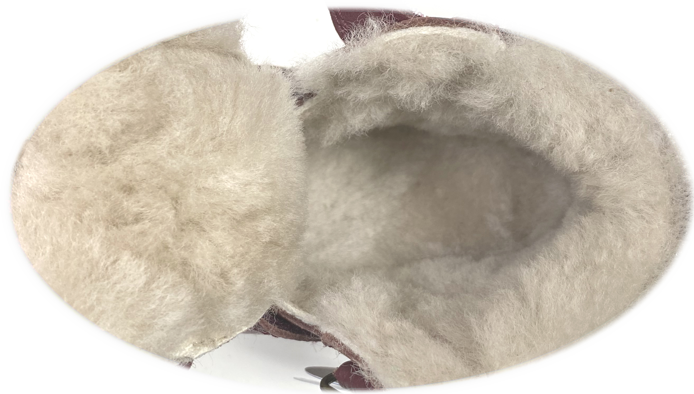 Warm haltende Minimalschuhe / Barfußschuhe mit kuscheligem Lammfell gefüttert, bis über den Knöchel gehend aus weichem, LWG zertifiziertem Nappaleder, mit quer und längs flexibler Minimalsohle aus Naturkautschuk und praktischem Doppelklett, aus der Barefoot-Linie von dem dänischen Hersteller BISGAARD. > Bitte beachten Sie die im Bild angegebenen Maße, um unnötige Rücksendungen zu vermeiden. Bei Fragen wenden Sie sich gerne vor dem Kauf per E-Mail an uns. Ihr Team KJ Fashion! < Modell: Barefoot Becky Lamb 24114.225- 1807 BordeauxMaterial: 100% LWG zertifiziertes Leder | Innen: Lammfell | Innensohle: herausnehmbar, mit Wolle bezogen, am Rand gebogen für geringeres rutschen im Schuh | Sohle: GummiWeite (diese bezieht sich auf das Volumen im Schuh) für normal hohen bis flachen Spann | Leisten (Stehfläche Fuß) normal | Ferse: normal | Fessel: Normal bis Schmal | Zehenbox: anatomisch gerundet geformt - halbhoher gefütterter Schuh bis über den Gelenkknöchel gehend für einen guten Sitz und Halt - abgepolsterter Einstieg für ein angenehmes Tragegefühl, komplett mit weichem, kuscheligem Lammfell ausgelegt - abgepolsterte Zunge damit so wenig wie möglich am Fuß oder der Fessel des Kindes drückt - Doppelklett zur optimalen Regulierung - herausnehmbare Innensohle ohne Erhöhungen ( Bitte regelmäßig zum durchlüften und säubern / durchsaugen herausnehmen) - sehr gut quer und längs flexible Gummisohle mit Minimalprofil - an der Spitze im Zehenbereich ist die Sohle etwas hochgezogen als Schutzkante Der optimale Schuh für Kids an kühleren Tagen aus weichen, hochwertigen Materialien von BISGAARD Barefoot. !! Bitte beachten - für extreme Nutzung durch Bobby Car / Laufrad / krabbeln mit der Spitze etc bitte geeeignete Schutzkappen über die Schuhe ziehen - da diese dafür nicht ausgelegt sind !! !! TIP bei kalten Füßen - tragen sie am besten Socken die nicht zu eng am Fuß sitzen aus Wolle, da diese sich am Fuß des Kindes nicht so schnell feucht und sich damit kalt anfühlen wie eine Socke aus Baumwolle - auch Funktionssocken leiten die Feuchtigkeit des Fußes hervorragend ab, so das das Kind nicht so schnell kalte Füße durch feuchte Socken bekommt -> Hier geht es zu unseren Woll und Funktionssocken <