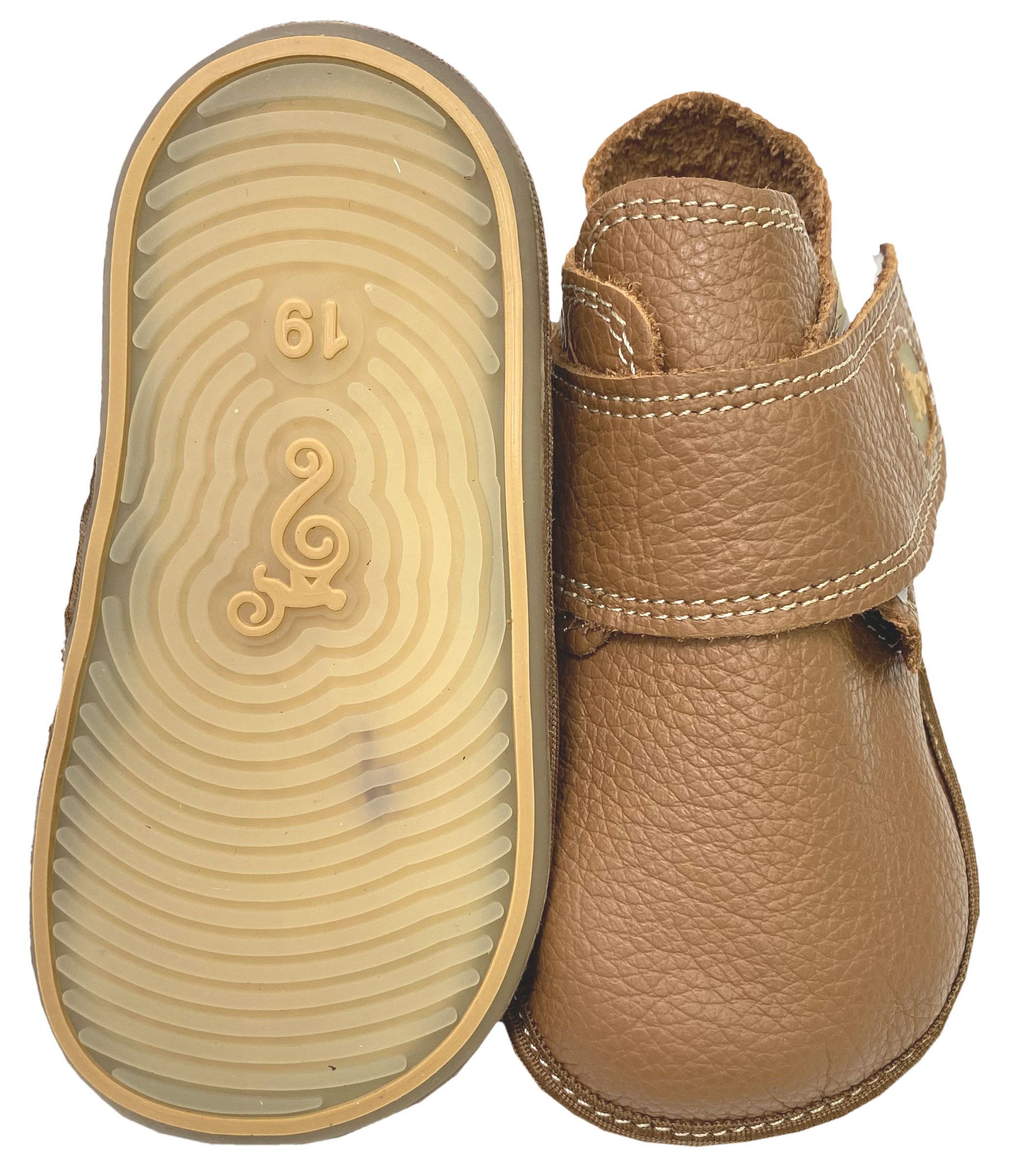 Leichte Lederschuhe mit 3,3 mm Sohle, breitem Klett Modell BALOO 2.0 Cognac von MAGICAL SHOES