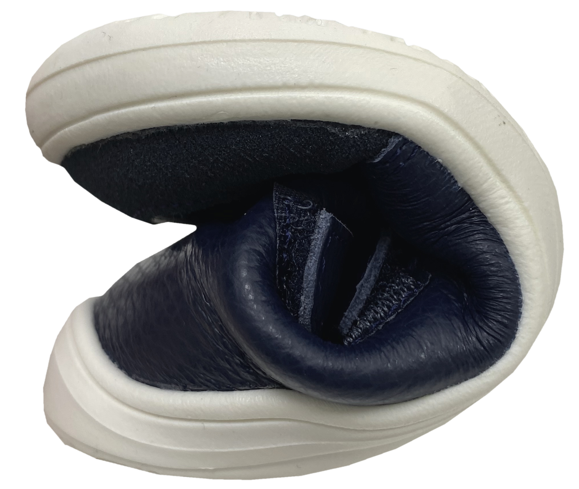 Super leichte und bequeme Stiefel aus weichem Leder mit kuscheligem, textilen Kunstfellfutter, dazwischen mit der Tex Membran gearbeitet, mit Doppelklett zu schließen (ab Gr. 34 mit 3 Klettstreifen), aus der Zentralslowakai von BABY BARE - ein kleiner Produzent von Barfußschuhen mit Minimalsohlen für Kinder. !! KJ FASHION Tip: Bitte das Bild mit den genauen Innensohlenmaßen je Größe beachten !! Bei Fragen gerne Mail an uns : info - at - kj-fashion.de :-) Modell: FEBO Winter Denim mit Schwarz abgesetztMaterial: Nappaleder aus Italien, Tex Membran teils recycelt | Futter: Warmfutter in Wolloptik aus weichem Textil | Sohle: Gummi ca. 3mm Stärke mit minimalem ProfilPaßform des Leisten (Standfläche Fuß - als Breite bezeichnet ) normale Breite | Weite ( beschreibt das Volumen auch als Spannhöhe bezeichnet) : normal bis flach | Mittelfuß: normal | Ferse: normal bis schmal | Zehenbox: Anatomisch geformt, super auch für dominanten Großzeh geeignet - ganz leichte, gut quer und längs flexible Stiefel mit weichem Kunstfellfutter für kühlere Tage aus weichem Leder - mit aufgesetzter Stoßkante an der Spitze aus geripptem, robustem Material - klassische High Top Höhe bis gut über den Gelenkknöchel gehend - Doppelklett für ein einfaches anziehen - ab Größe 34 werden 3 Klettstreifen gearbeitet - mit einer Tex Membran zwischen beiden Materialschichten gearbeitet ( Membrane bitte immer gut trocknen und auslüften lassen ) - weiches Glattleder mit toller Farbwiedergabe, robuste, quer und längs flexible Gummisohle mit minimaler Stärke von 3 mm Ein leichter und sehr bequemer Schuh für die kühleren Tage von BABY BARE aus der Slowakai. !! Durch die extra weichen und leichten Materialien der Schuhe, bitte beachten das dies nicht zum Laufrad fahren, Bobby Car fahren etc, generell das starke schleifen des Materials auf Asphalt / Steinen etc. geeignet sind - da dieses das Material extrem beansprucht und es zu Rissen etc kommen kann. Bitte dann geeignete Schutzkappen nutzen. !! !! TIP bei kalten Füßen - tragen sie am besten Socken die nicht zu eng am Fuß sitzen aus Wolle, da diese sich am Fuß des Kindes nicht so schnell feucht und sich damit kalt anfühlen wie eine Socke aus Baumwolle - auch Funktionssocken leiten die Feuchtigkeit des Fußes hervorragend ab, so das das Kind nicht so schnell kalte Füße durch feuchte Socken bekommt -> Hier geht es zu unseren Woll und Funktionssocken <