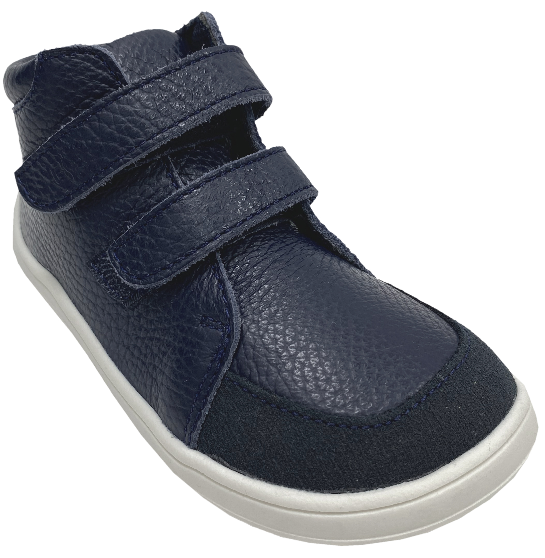 Super bequeme Halbschuhe in Mid Top Höhe aus weichem italienischem Leder mit TEX Membran und weichem, dünnem textilen Futter für den Übergang, mit Doppelklett zu schließen, aus der Zentralslowakai von BABY BARE - ein kleiner Produzent von Barfußschuhen mit Minimalsohlen für Kinder.