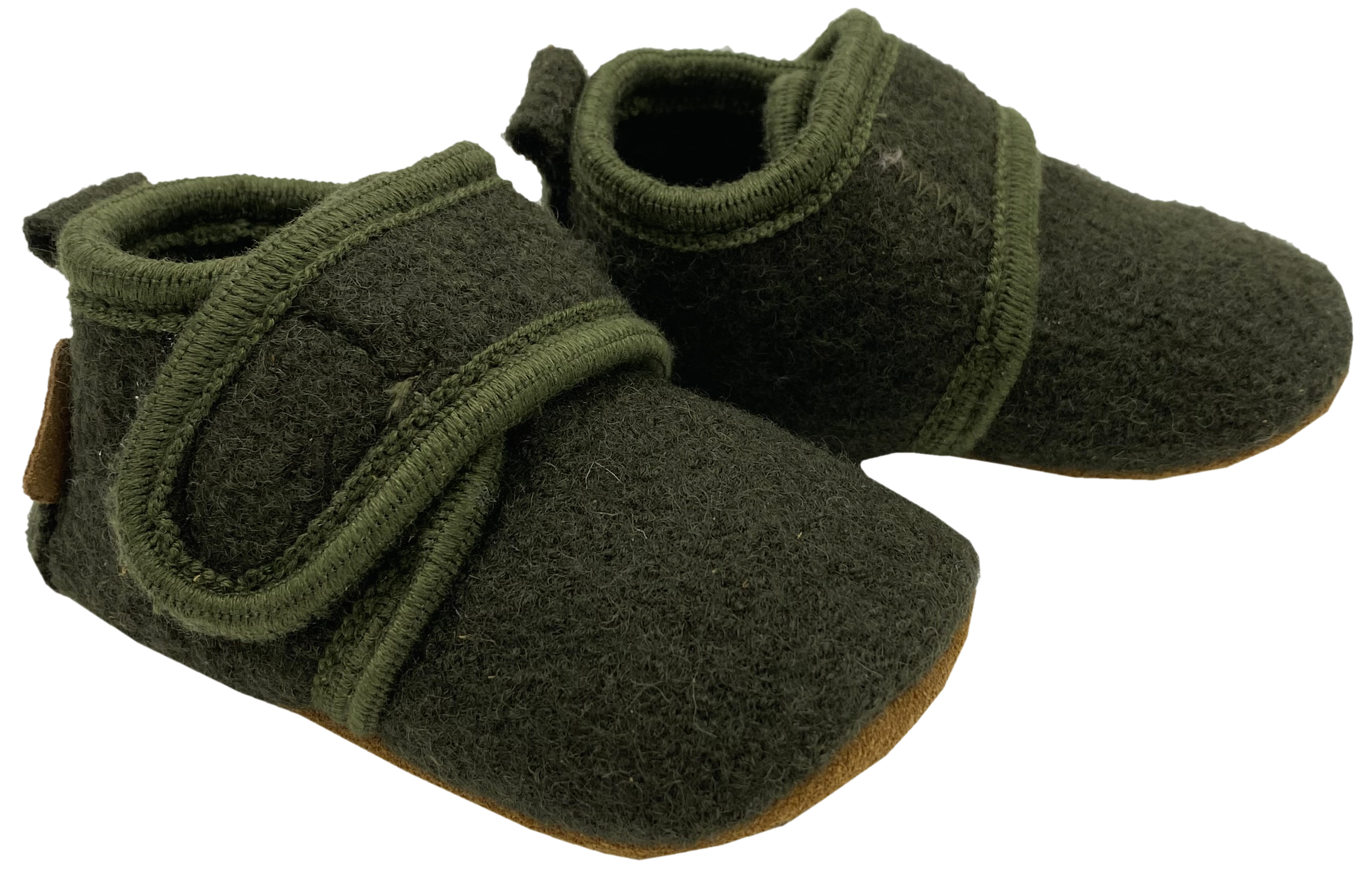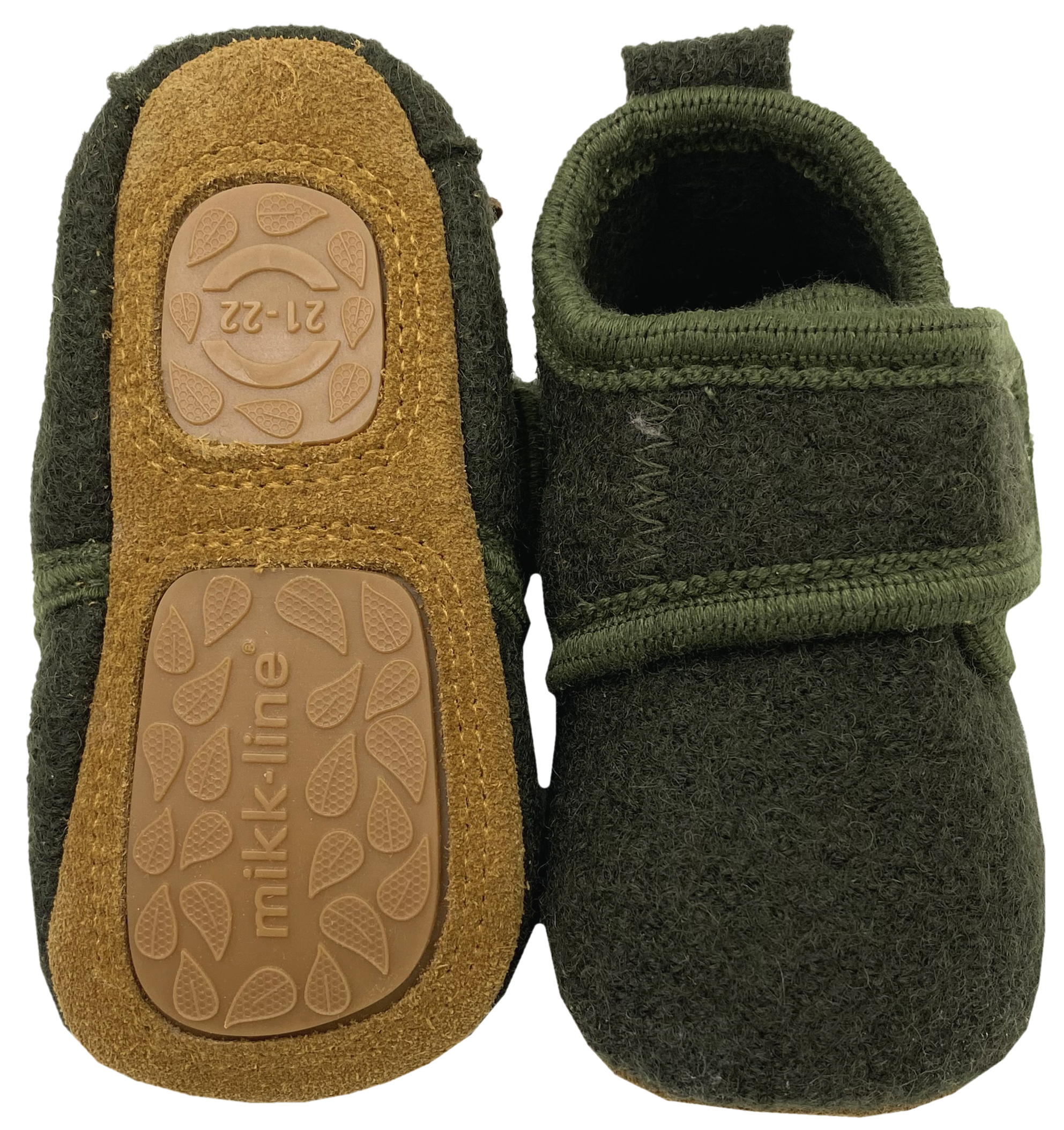Wollschuhe in Waldgrün mit Klett + Leder Sohle mit Gummibesatz von MikkLine 20007